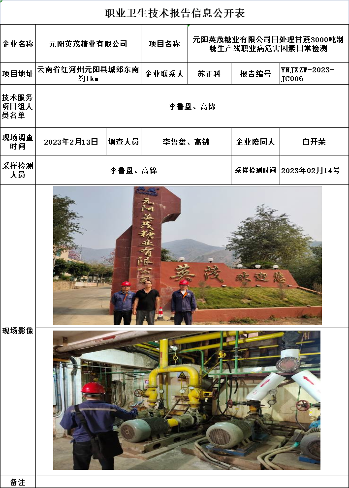 23-職業衛生(shēng)技術(shù)報告信息公開表-YNJXZW-2023-JC006