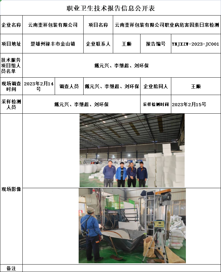 23-職業衛生(shēng)技術(shù)報告信息公開表-YNJXZW-2023-JC001