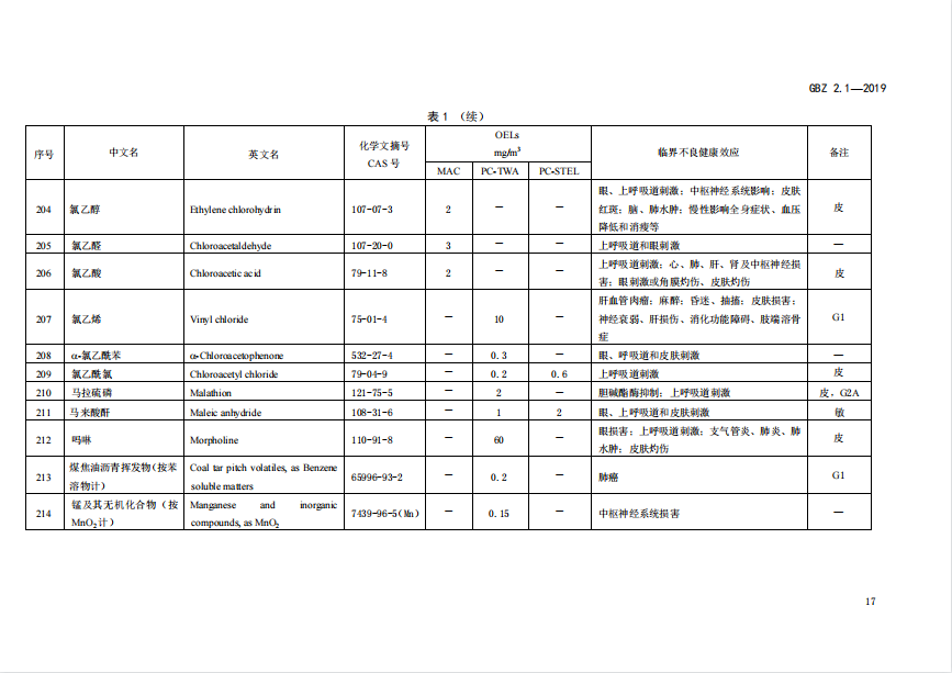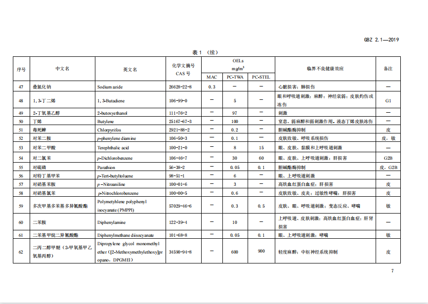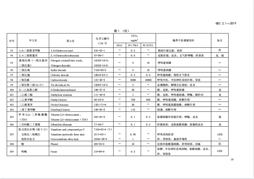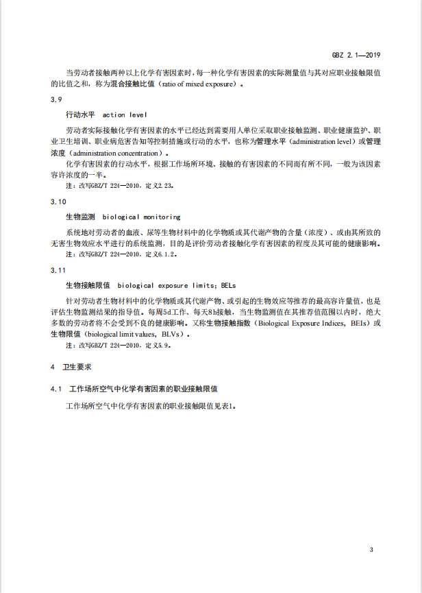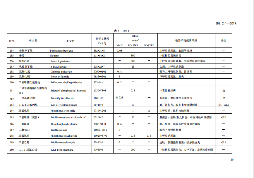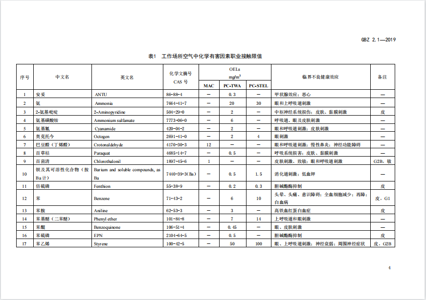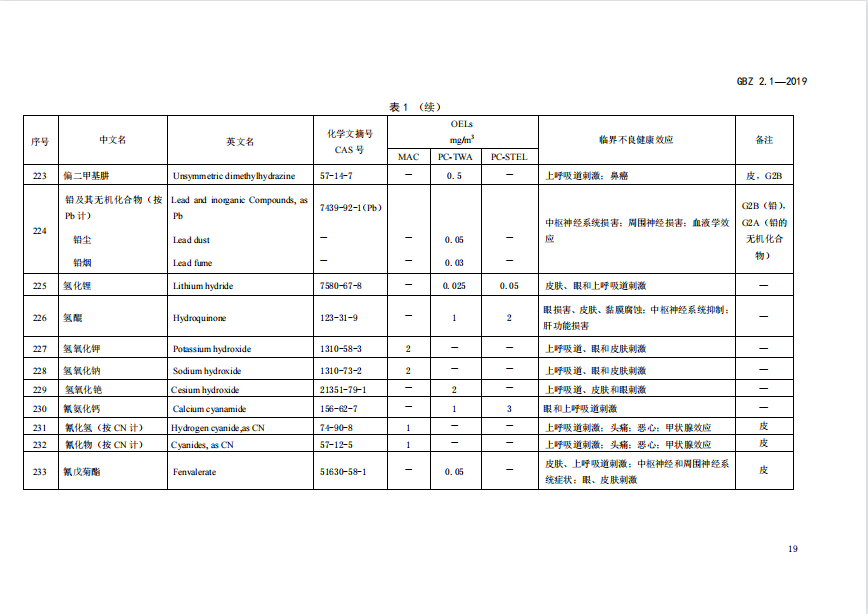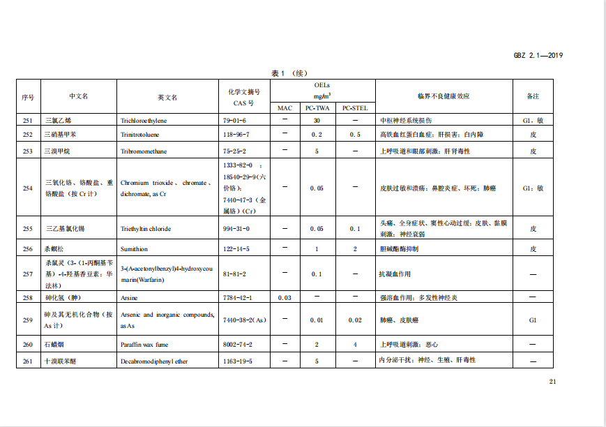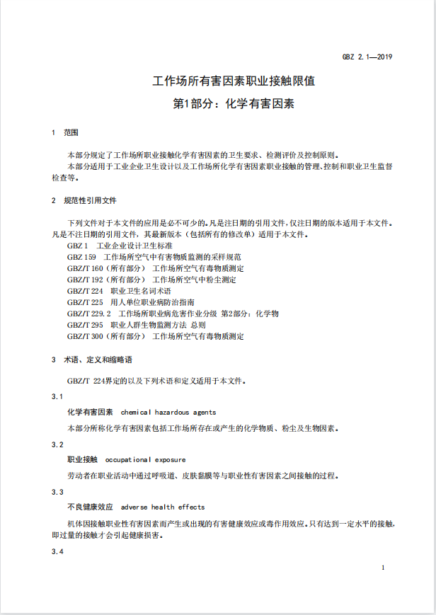GBZ 2.1-2019 工(gōng)作(zuò)場所有害因素職業接觸限值 第1部分(fēn)化學有害因素