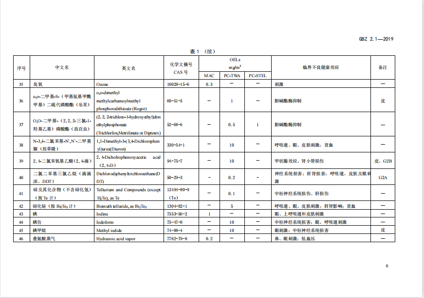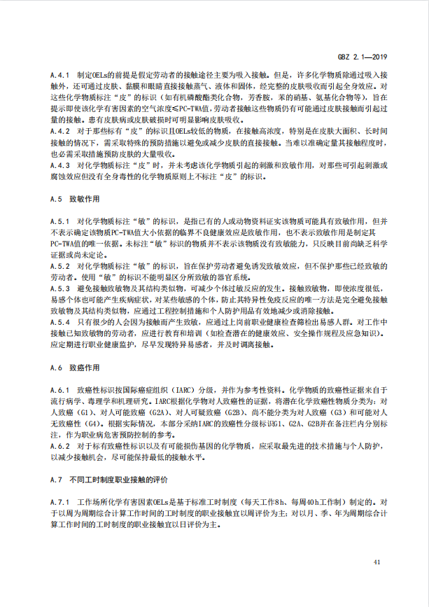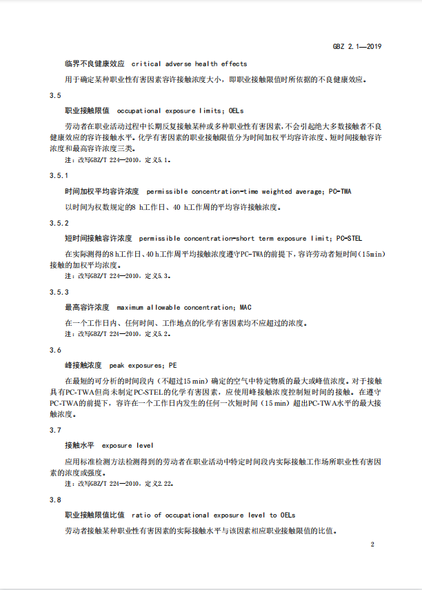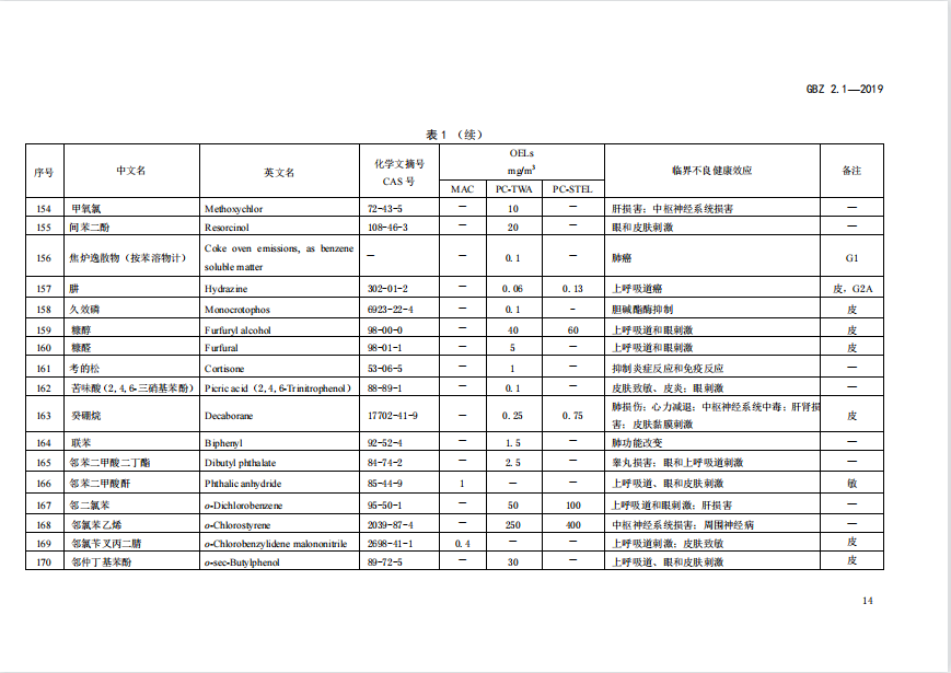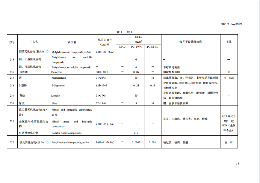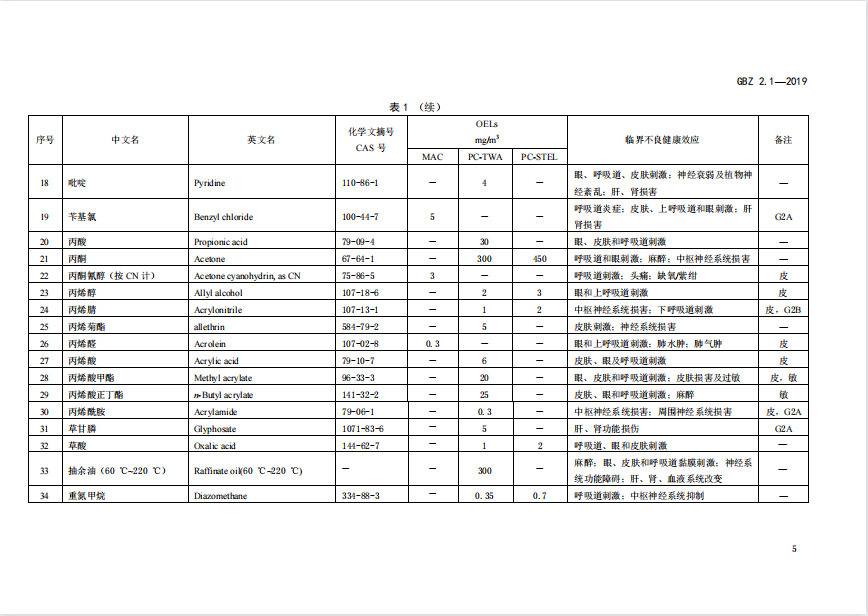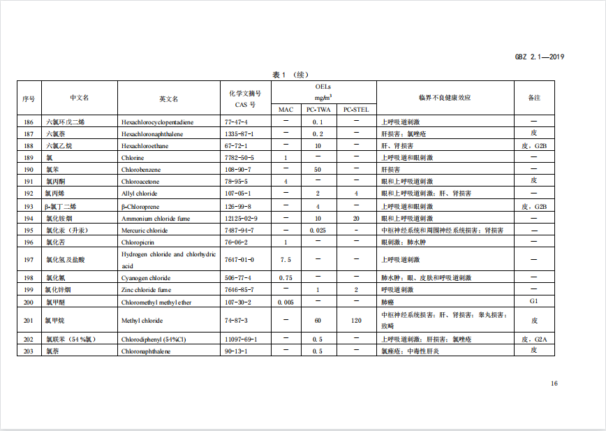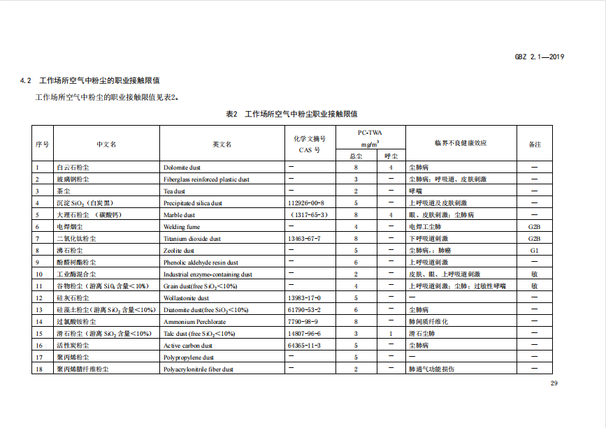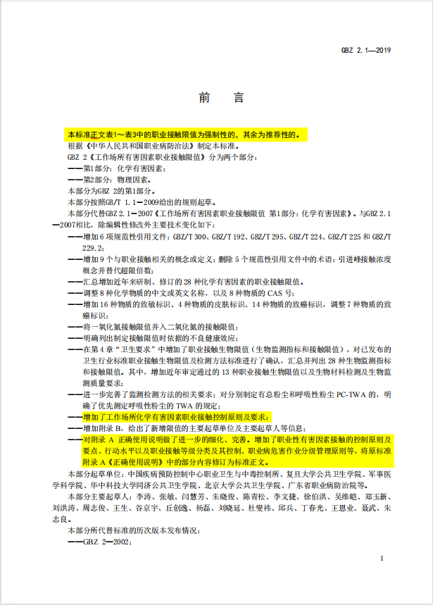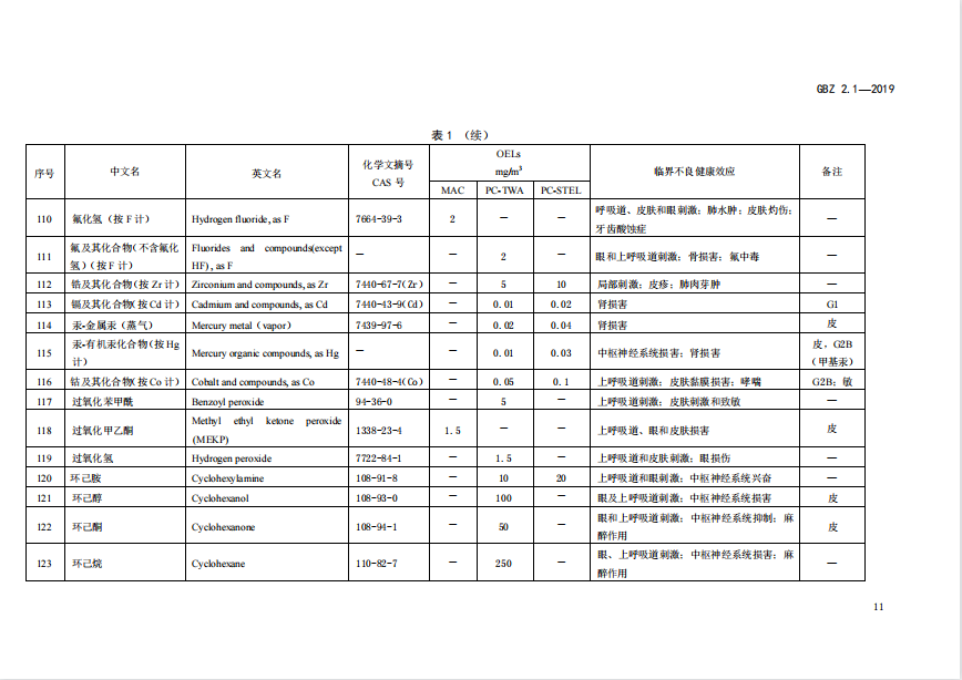 GBZ 2.1-2019 工(gōng)作(zuò)場所有害因素職業接觸限值 第1部分(fēn)化學有害因素