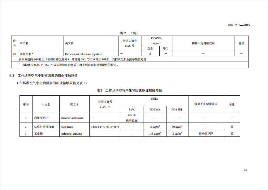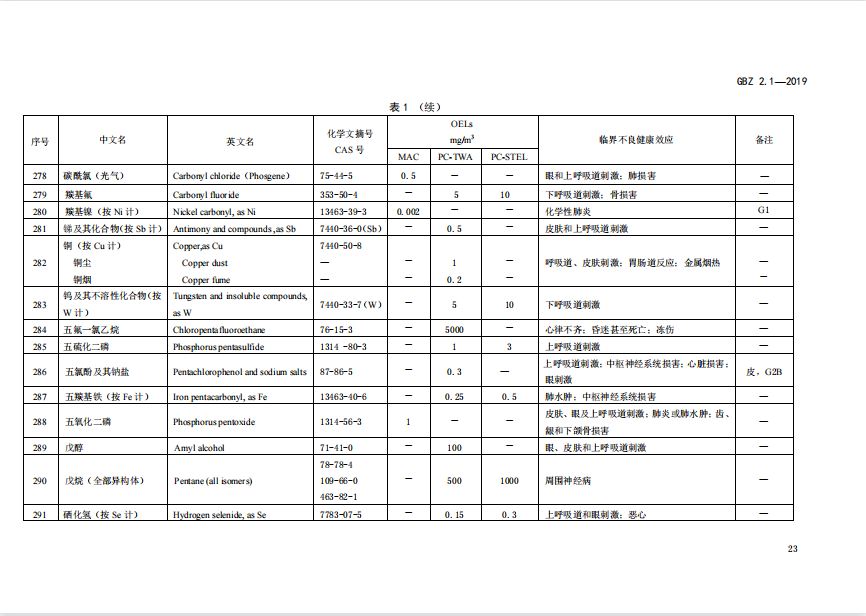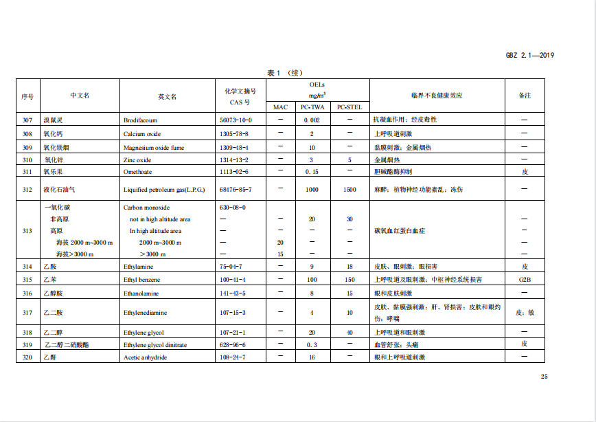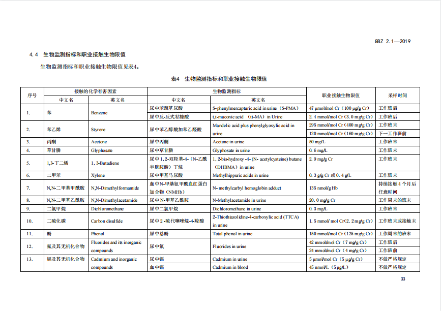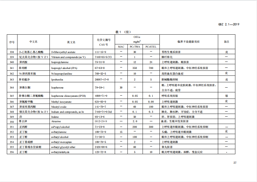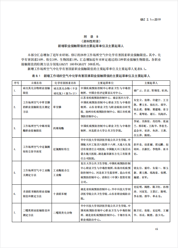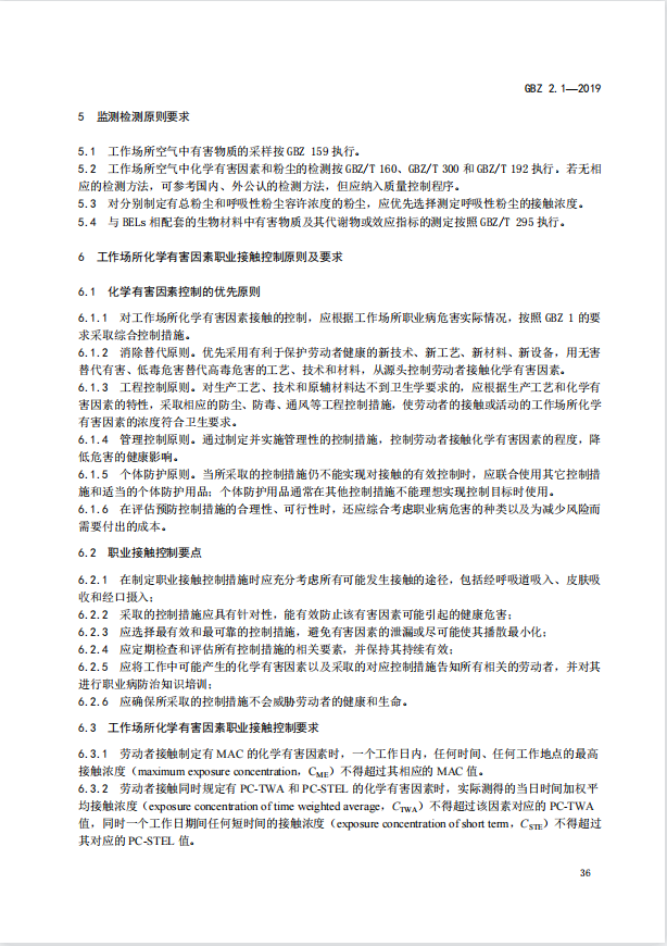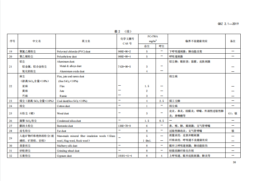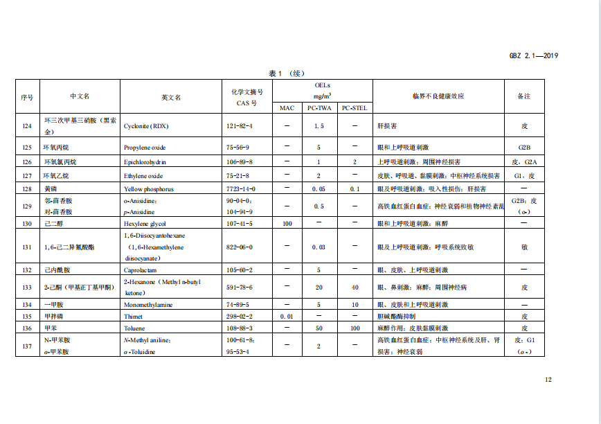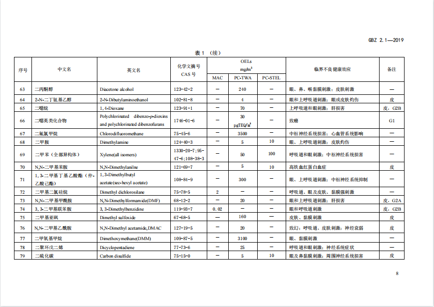 GBZ 2.1-2019 工(gōng)作(zuò)場所有害因素職業接觸限值 第1部分(fēn)化學有害因素