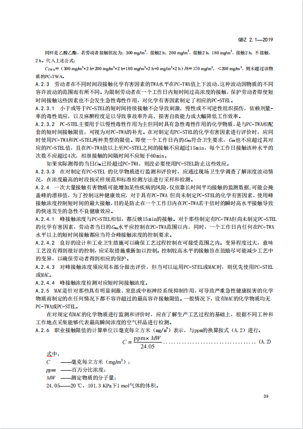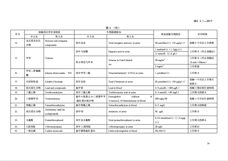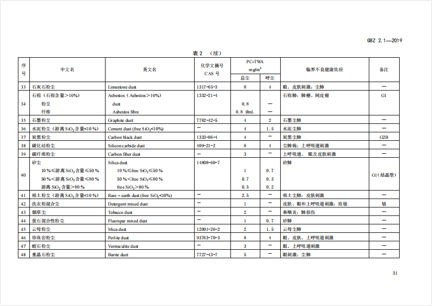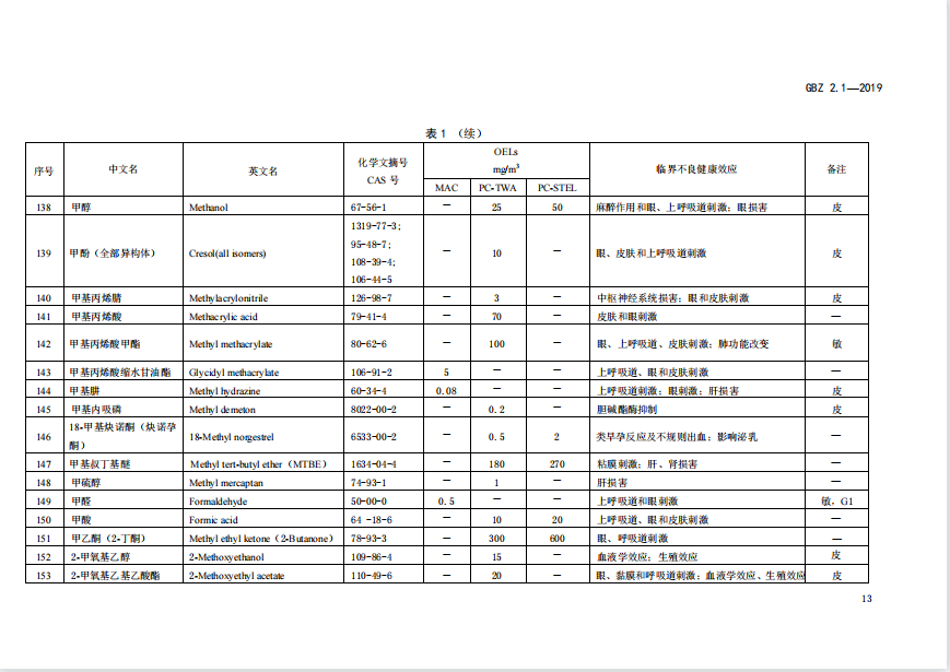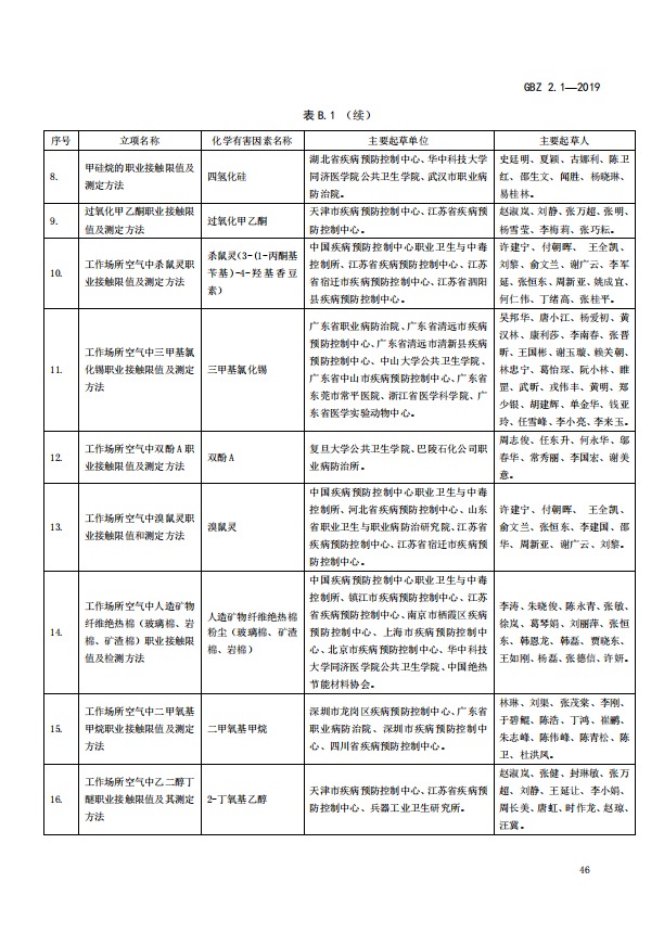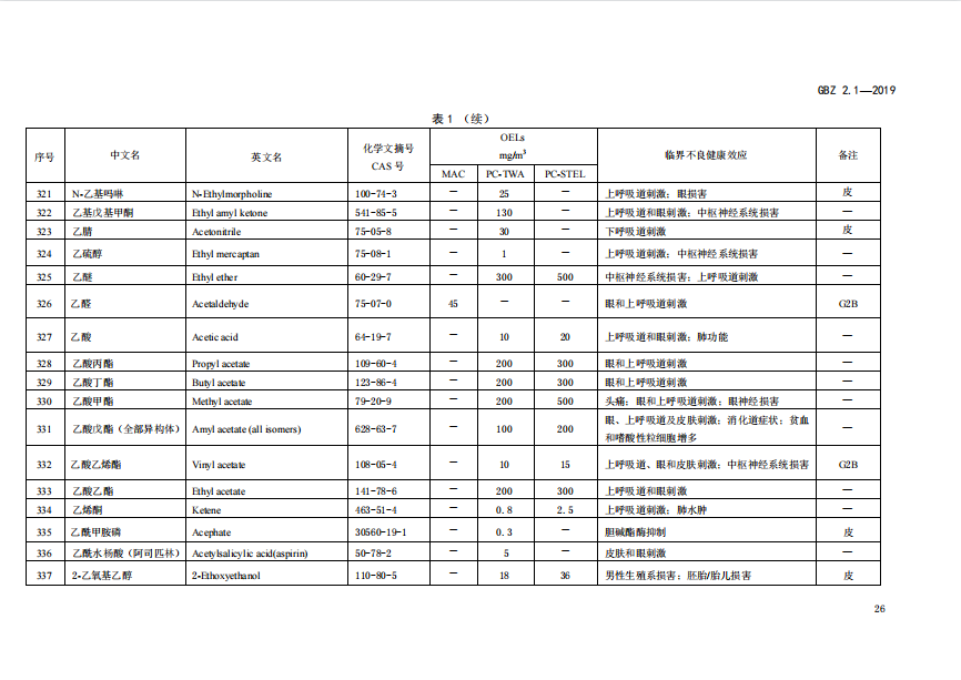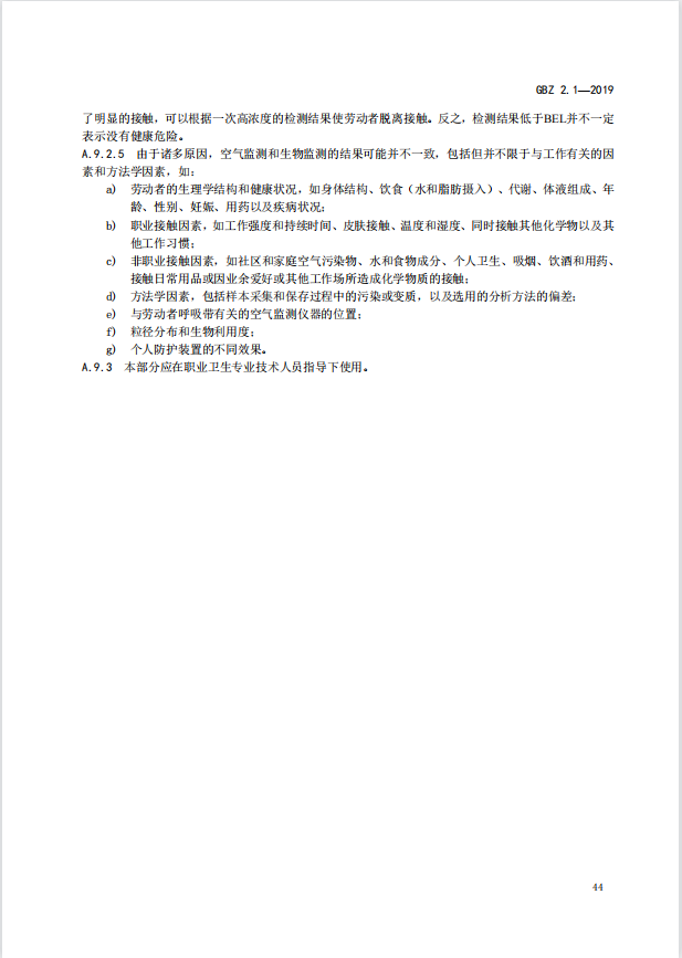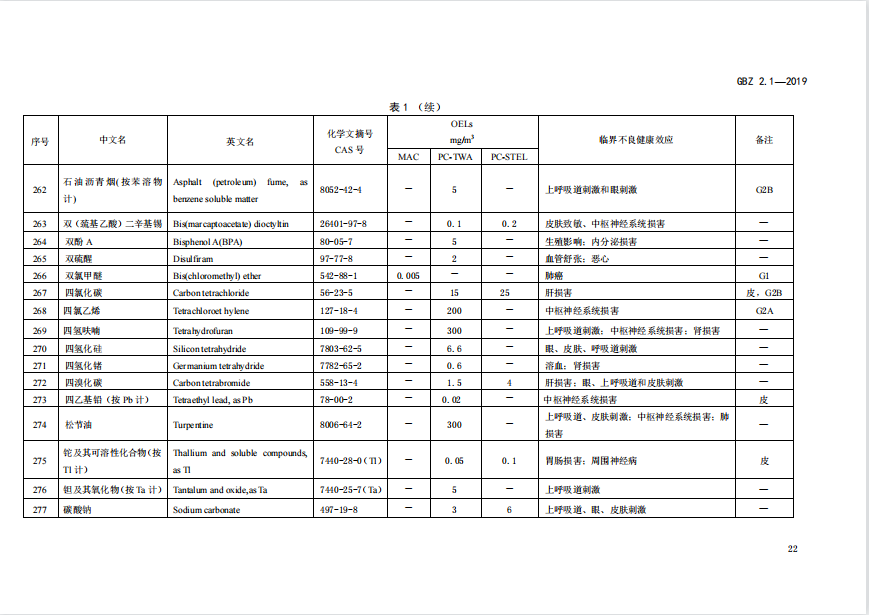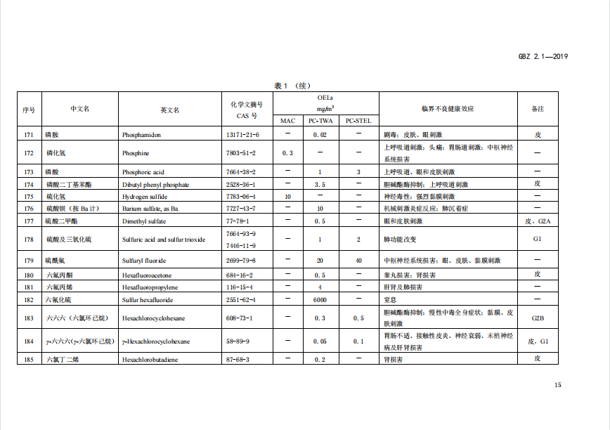GBZ 2.1-2019 工(gōng)作(zuò)場所有害因素職業接觸限值 第1部分(fēn)化學有害因素