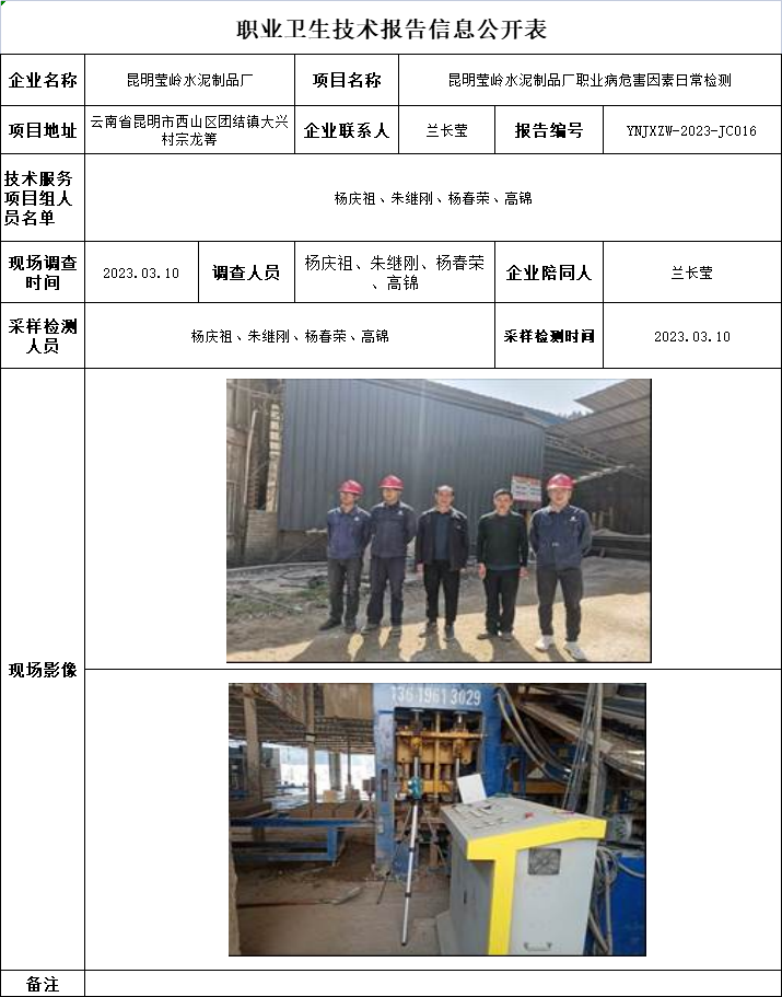 23-職業衛生(shēng)技術(shù)報告信息公開表-YNJXZW-2023-JC016