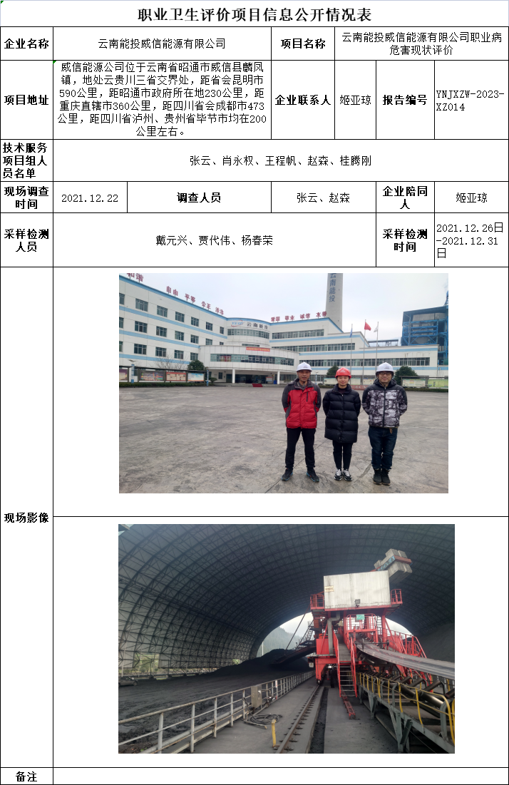 23-職業衛生(shēng)評價項目信息公開表-YNJXZW-2023-XZ014