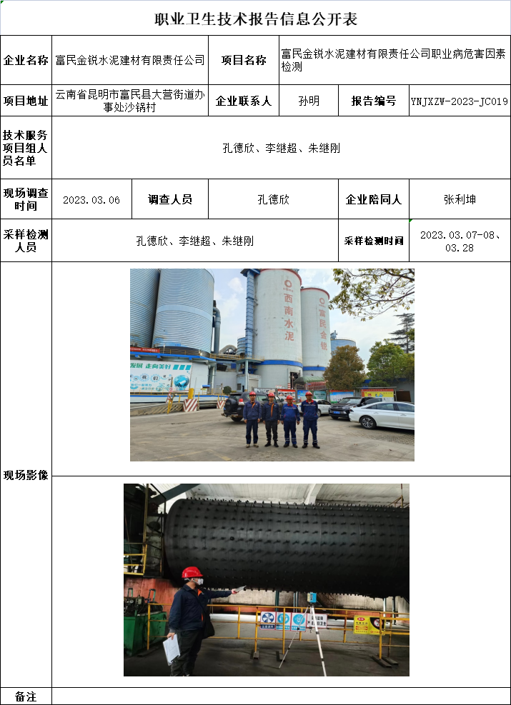 23-職業衛生(shēng)技術(shù)報告信息公開表-YNJXZW-2023-JC019