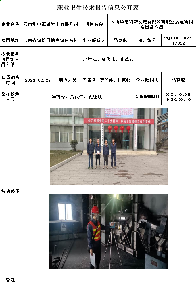 23-職業衛生(shēng)技術(shù)報告信息公開表-YNJXZW-2023-JC022