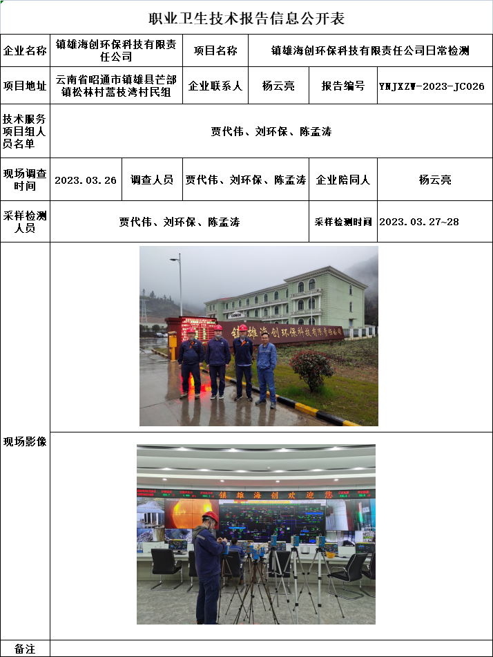 23-職業衛生(shēng)技術(shù)報告信息公開表-YNJXZW-2023-JC026