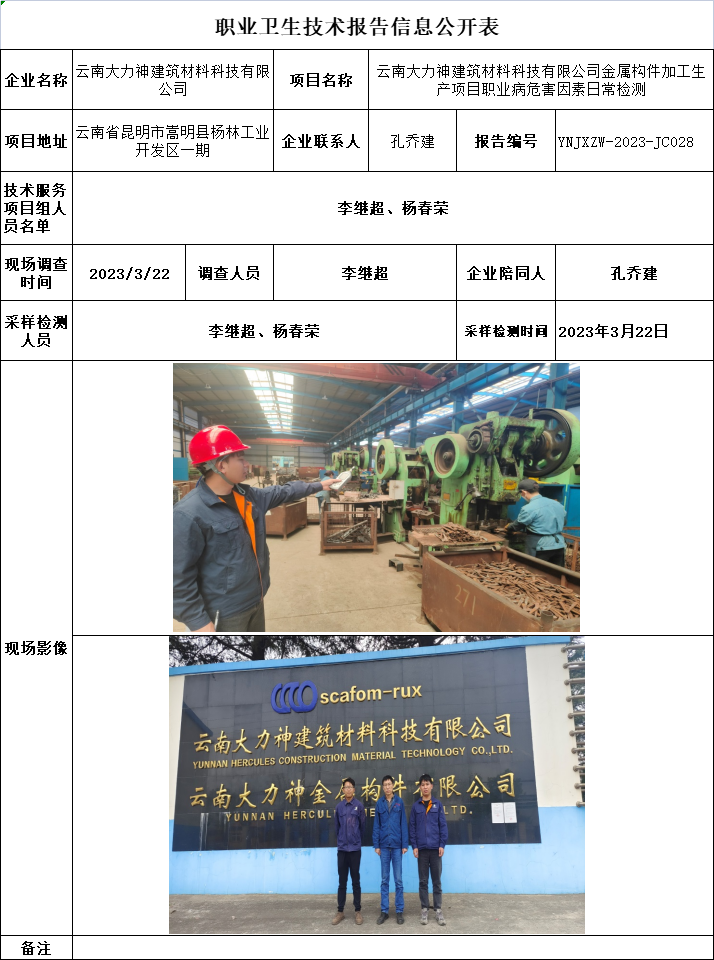 23-職業衛生(shēng)技術(shù)報告信息公開表-YNJXZW-2023-JC028