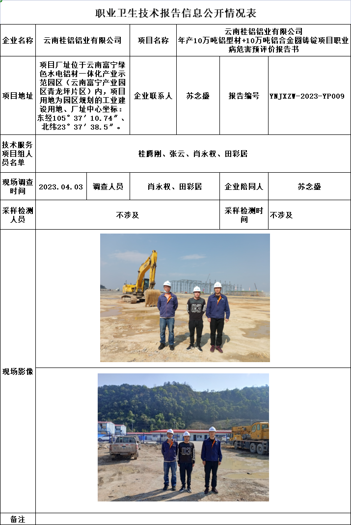 23-職業衛生(shēng)技術(shù)報告信息公開情況表-YNJXZW-2023-YP009