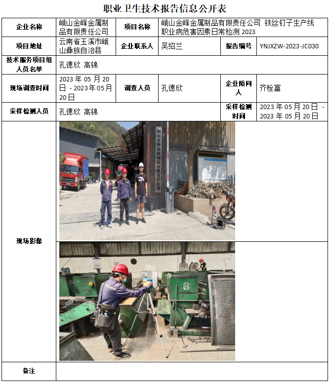 23-職業衛生(shēng)技術(shù)報告信息公開表-YNJXZW-2023-JC030