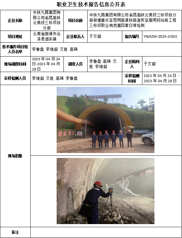 23-職業衛生(shēng)技術(shù)報告信息公開表-YNJXZW-2023-JC033