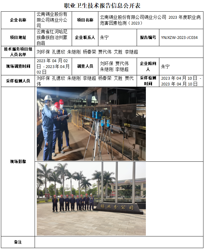 23-職業衛生(shēng)技術(shù)報告信息公開表-YNJXZW-2023-JC034