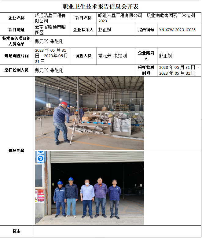 23-職業衛生(shēng)技術(shù)報告信息公開表-YNJXZW-2023-JC035