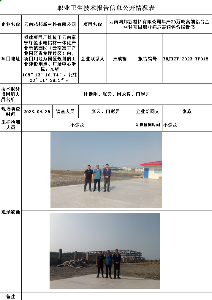 23-職業衛生(shēng)技術(shù)報告信息公開表-YNJXZW-2023-YP015