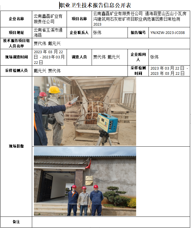 23-職業衛生(shēng)技術(shù)報告信息公開表-YNJXZW-2023-JC038