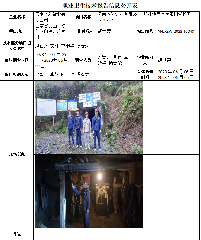 23-職業衛生(shēng)技術(shù)報告信息公開表-YNJXZW-2023-JC043