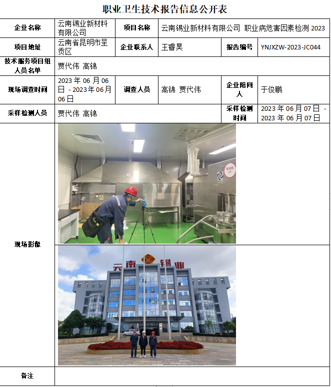 23-職業衛生(shēng)技術(shù)報告信息公開表-YNJXZW-2023-JC044
