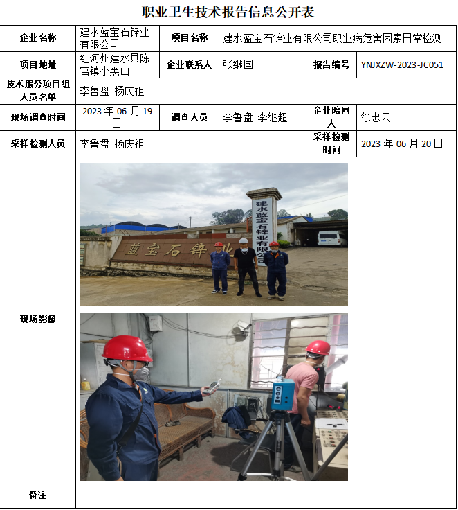 23-職業衛生(shēng)技術(shù)報告信息公開表-YNJXZW-2023-JC051