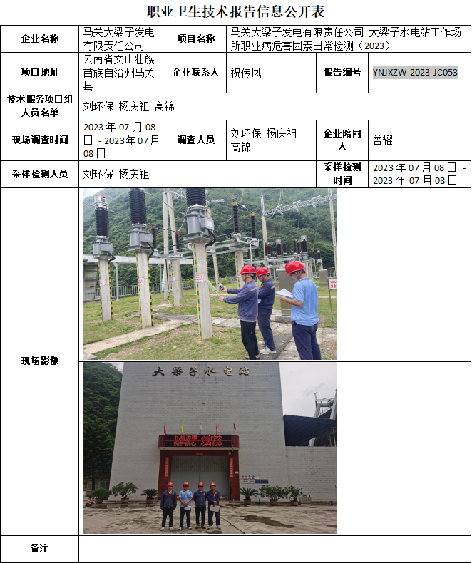 23-職業衛生(shēng)技術(shù)報告信息公開表-YNJXZW-2023-JC053