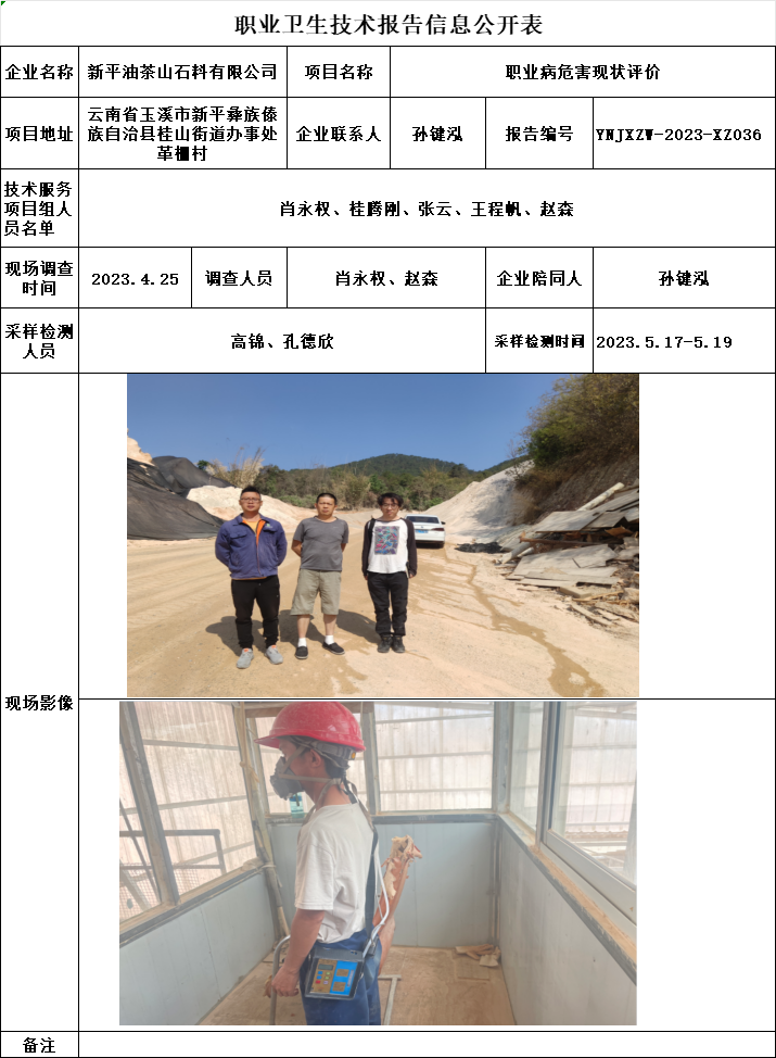 23-職業衛生(shēng)技術(shù)報告信息公開表-YNJXZW-2023-XZ036
