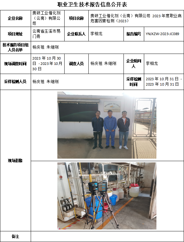 23-職業衛生(shēng)技術(shù)報告信息公開表-YNJXZW-2023-JC089