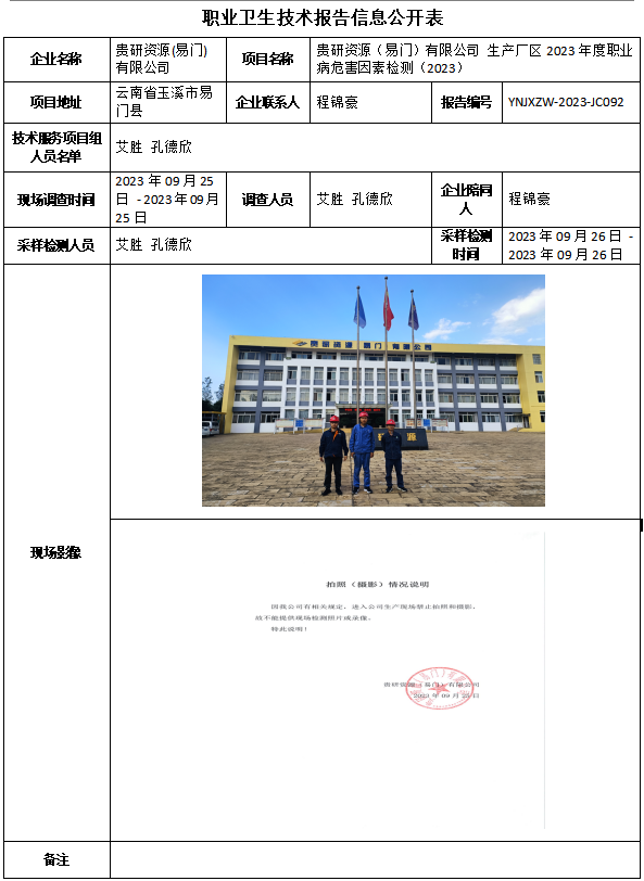 23-職業衛生(shēng)技術(shù)報告信息公開表-YNJXZW-2023-JC092
