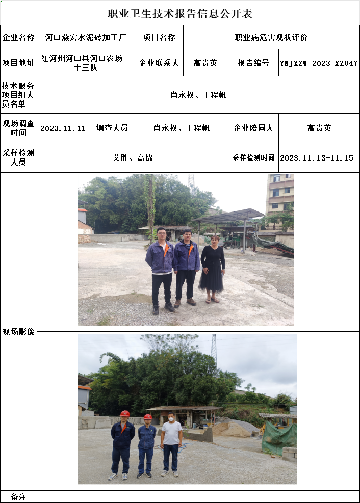 23-職業衛生(shēng)技術(shù)報告信息公開表-YNJXZW-2023-XZ047