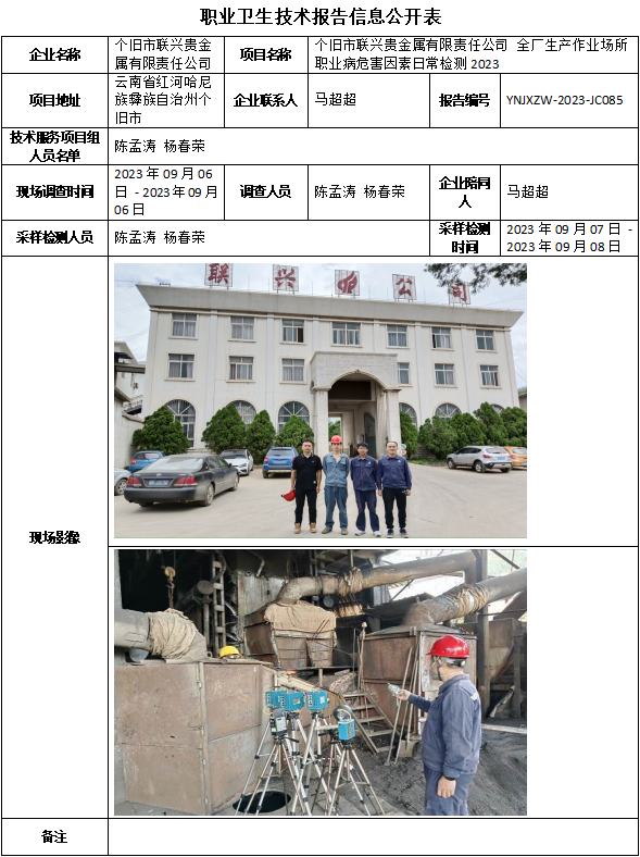 23-職業衛生(shēng)技術(shù)報告信息公開表-YNJXZW-2023-JC085