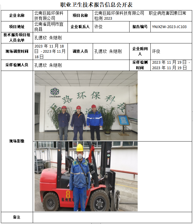 23-職業衛生(shēng)技術(shù)報告信息公開表-YNJXZW-2023-JC103