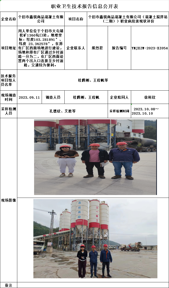 23-職業衛生(shēng)技術(shù)報告信息公開表-YNJXZW-2023-XZ054