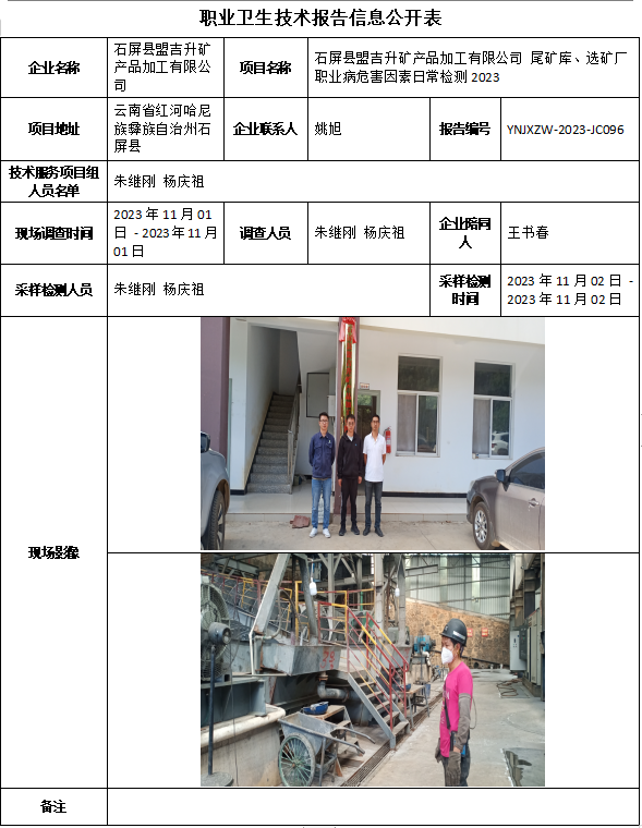 23-職業衛生(shēng)技術(shù)報告信息公開表-YNJXZW-2023-JC096