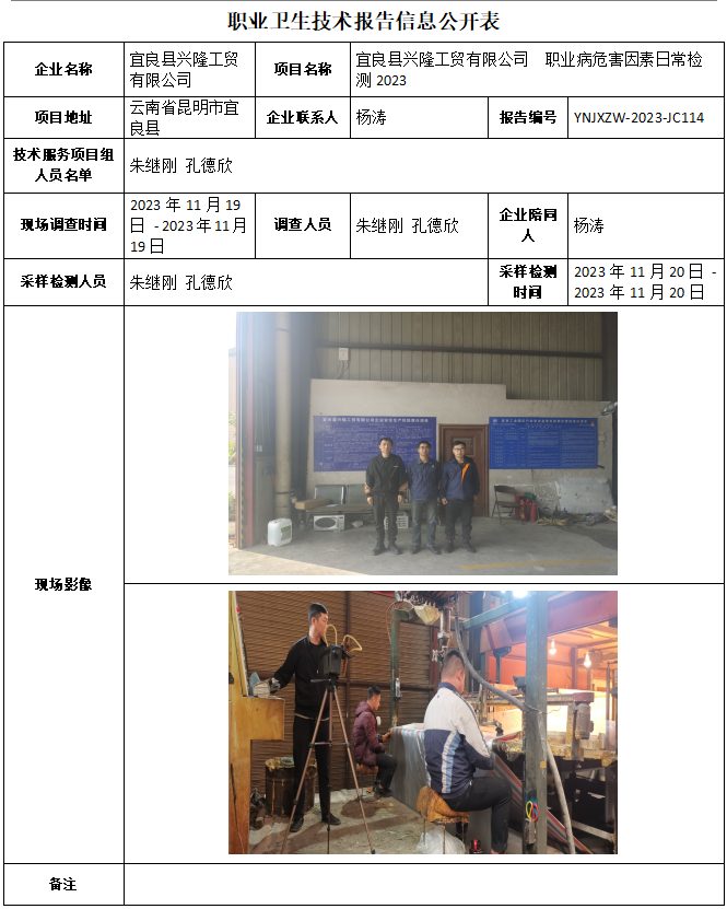 23-職業衛生(shēng)技術(shù)報告信息公開表-YNJXZW-2023-JC114
