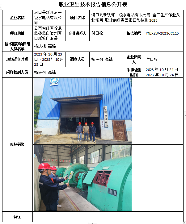 23-職業衛生(shēng)技術(shù)報告信息公開表-YNJXZW-2023-JC115