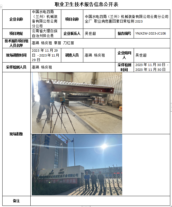 23-職業衛生(shēng)技術(shù)報告信息公開表-YNJXZW-2023-JC106