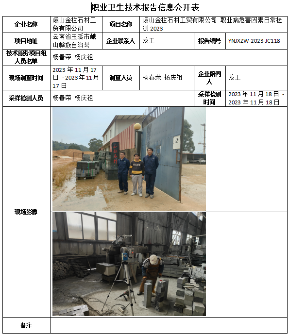 23-職業衛生(shēng)技術(shù)報告信息公開表-YNJXZW-2023-JC118