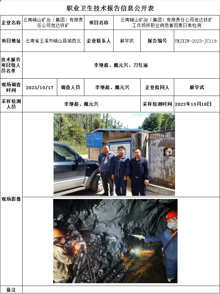 23-職業衛生(shēng)技術(shù)報告信息公開表-YNJXZW-2023-JC119