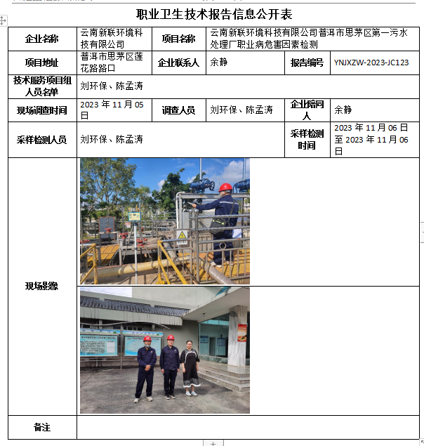 23-職業衛生(shēng)技術(shù)報告信息公開表-YNJXZW-2023-JC123