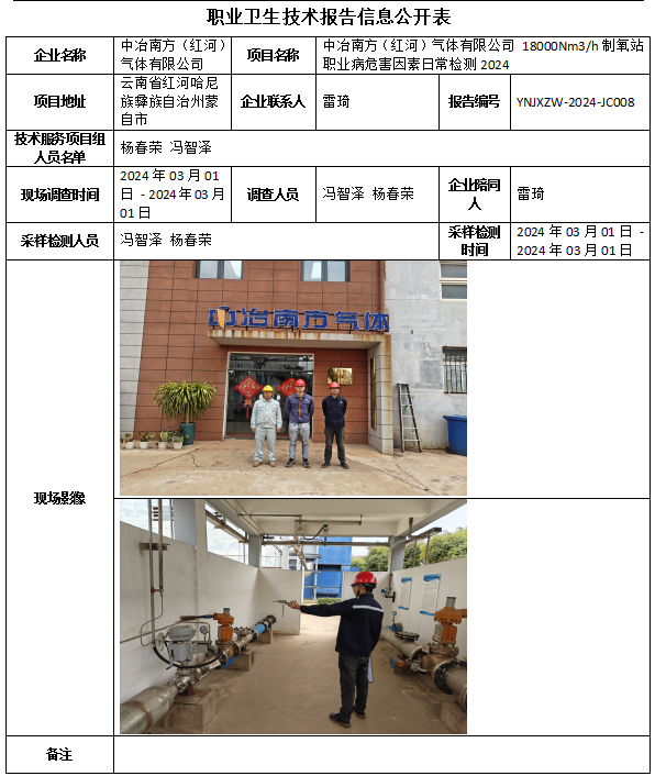 24-職業衛生(shēng)技術(shù)報告信息公開表-YNJXZW-2024-JC008