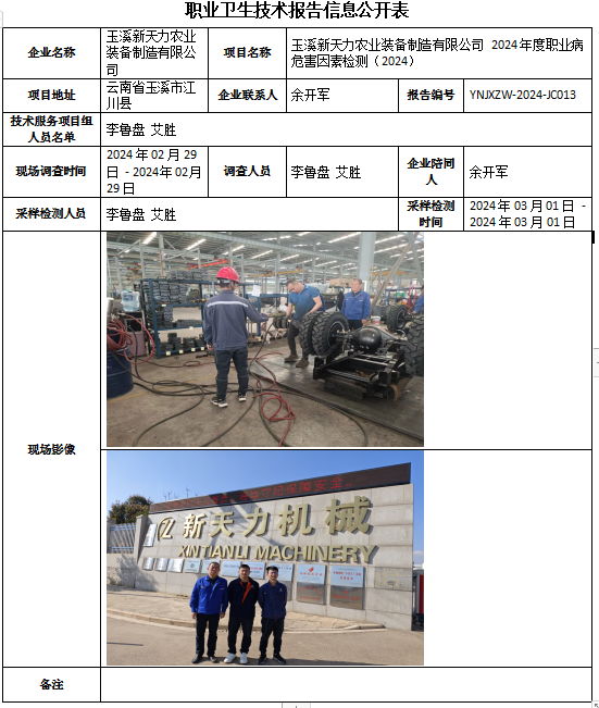 24-職業衛生(shēng)技術(shù)報告信息公開表-YNJXZW-2024-JC013