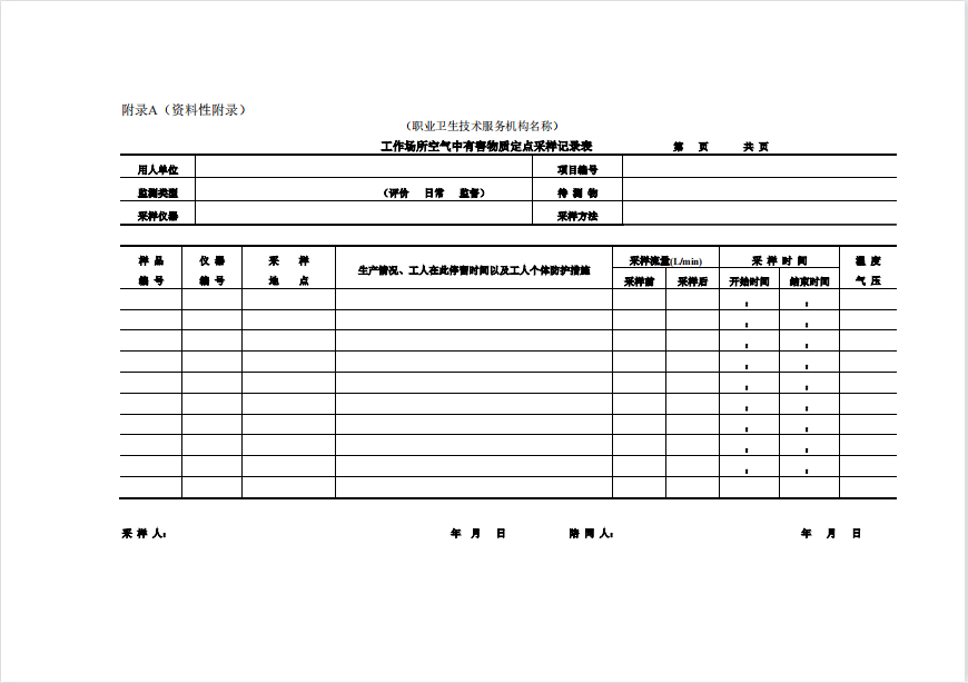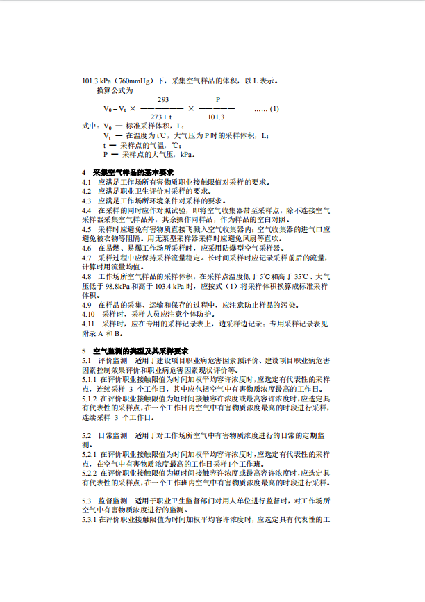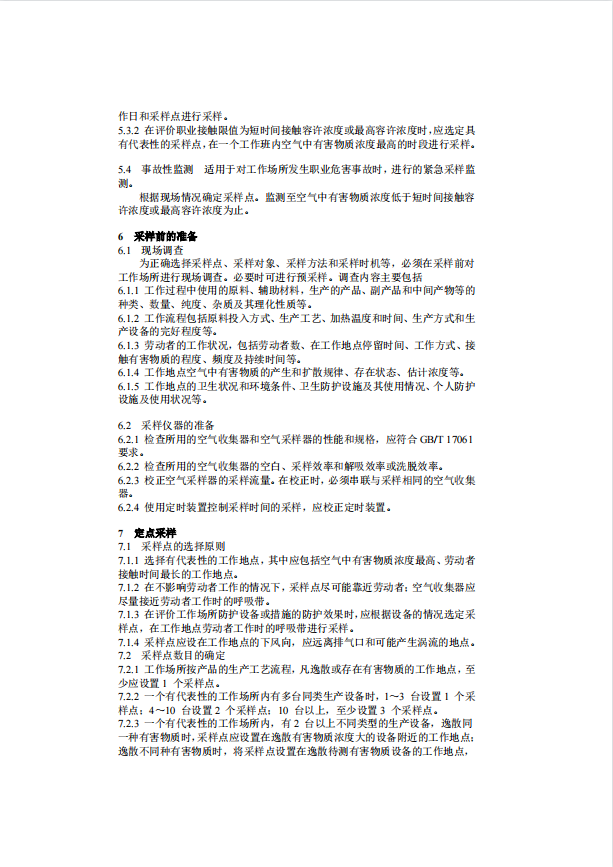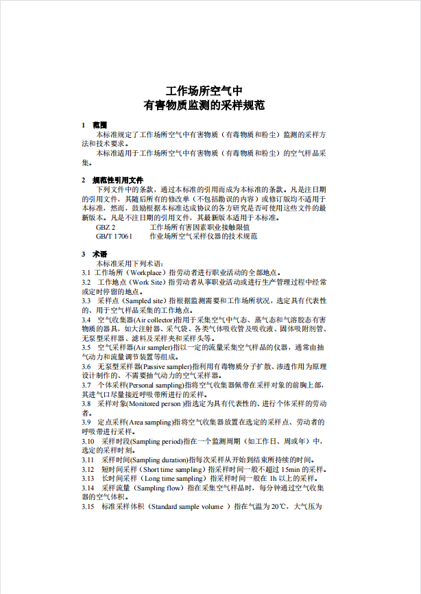 GBZ 159-2004 工(gōng)作(zuò)場所空氣中有害物質監測的采樣規範