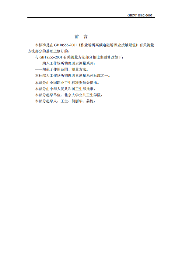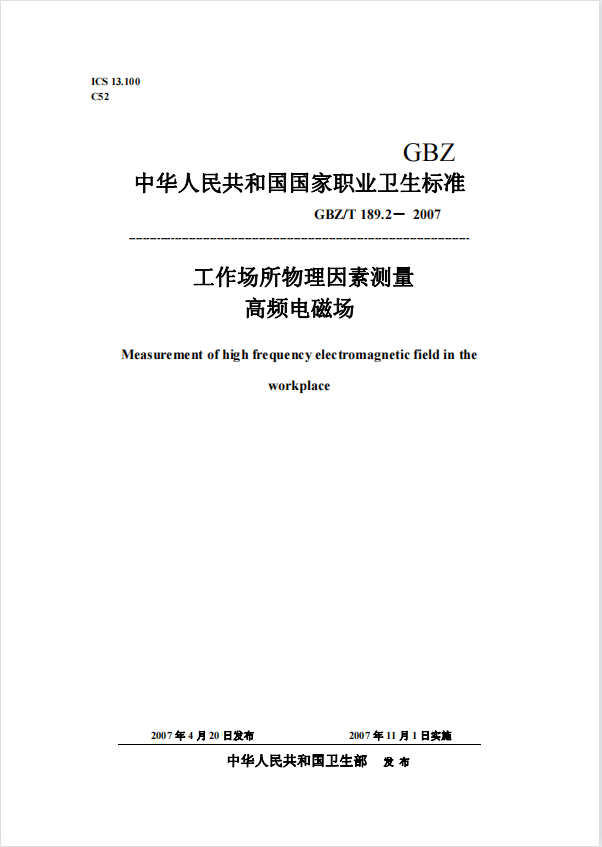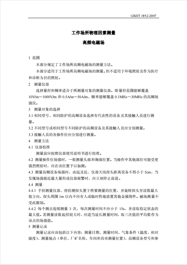 GBZT 189.2- 2007 工(gōng)作(zuò)場所物理(lǐ)因素測量 高頻電磁場