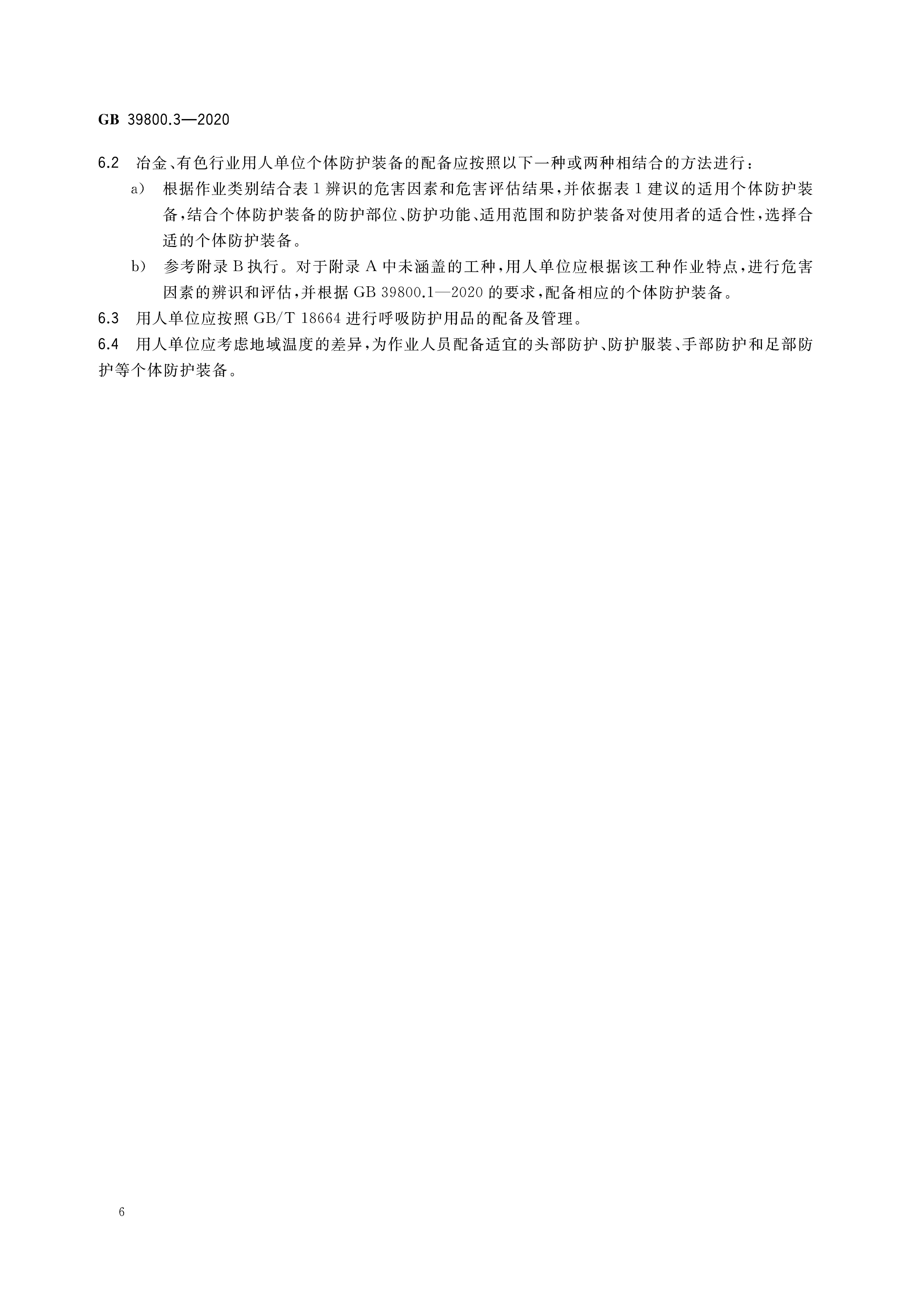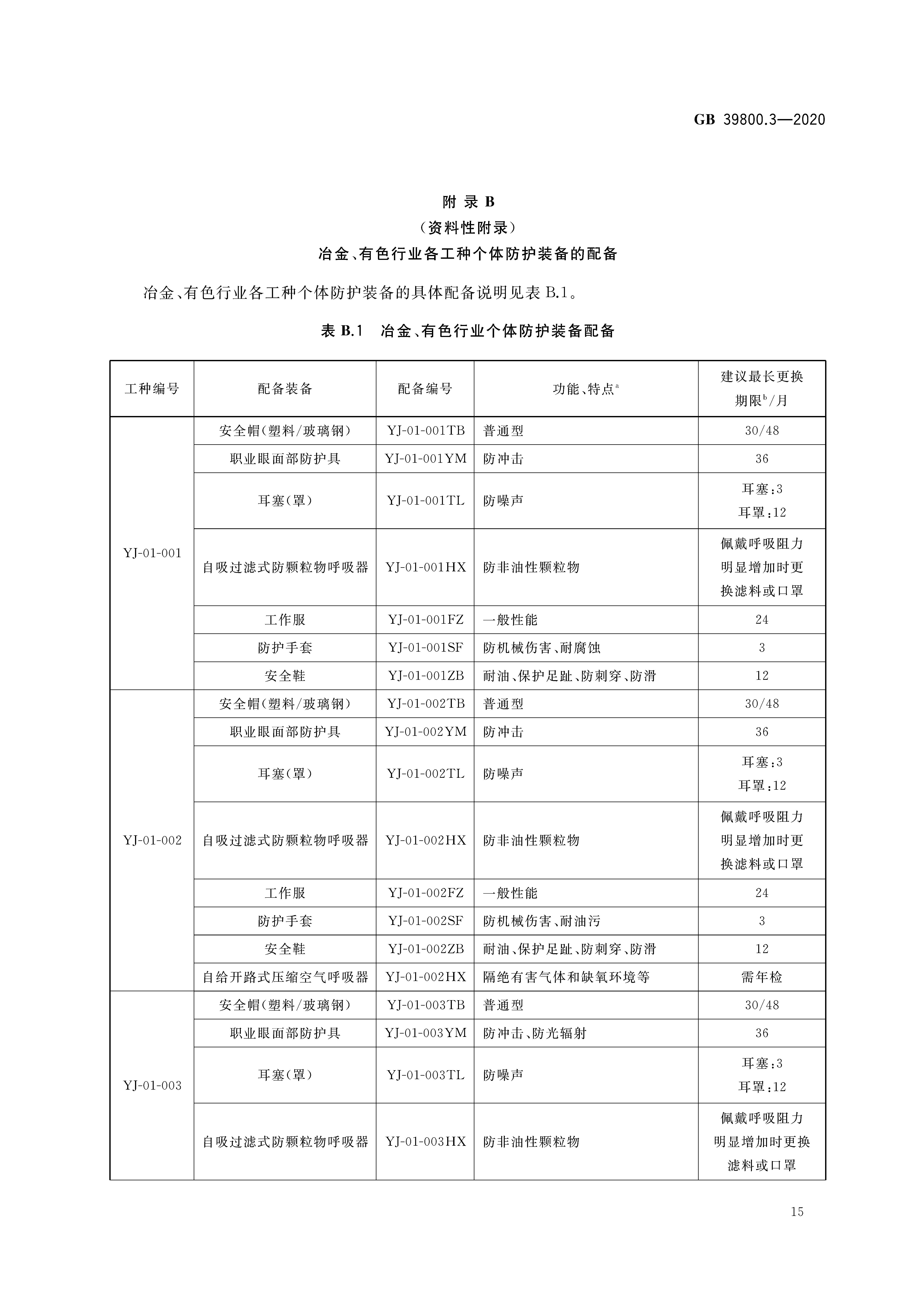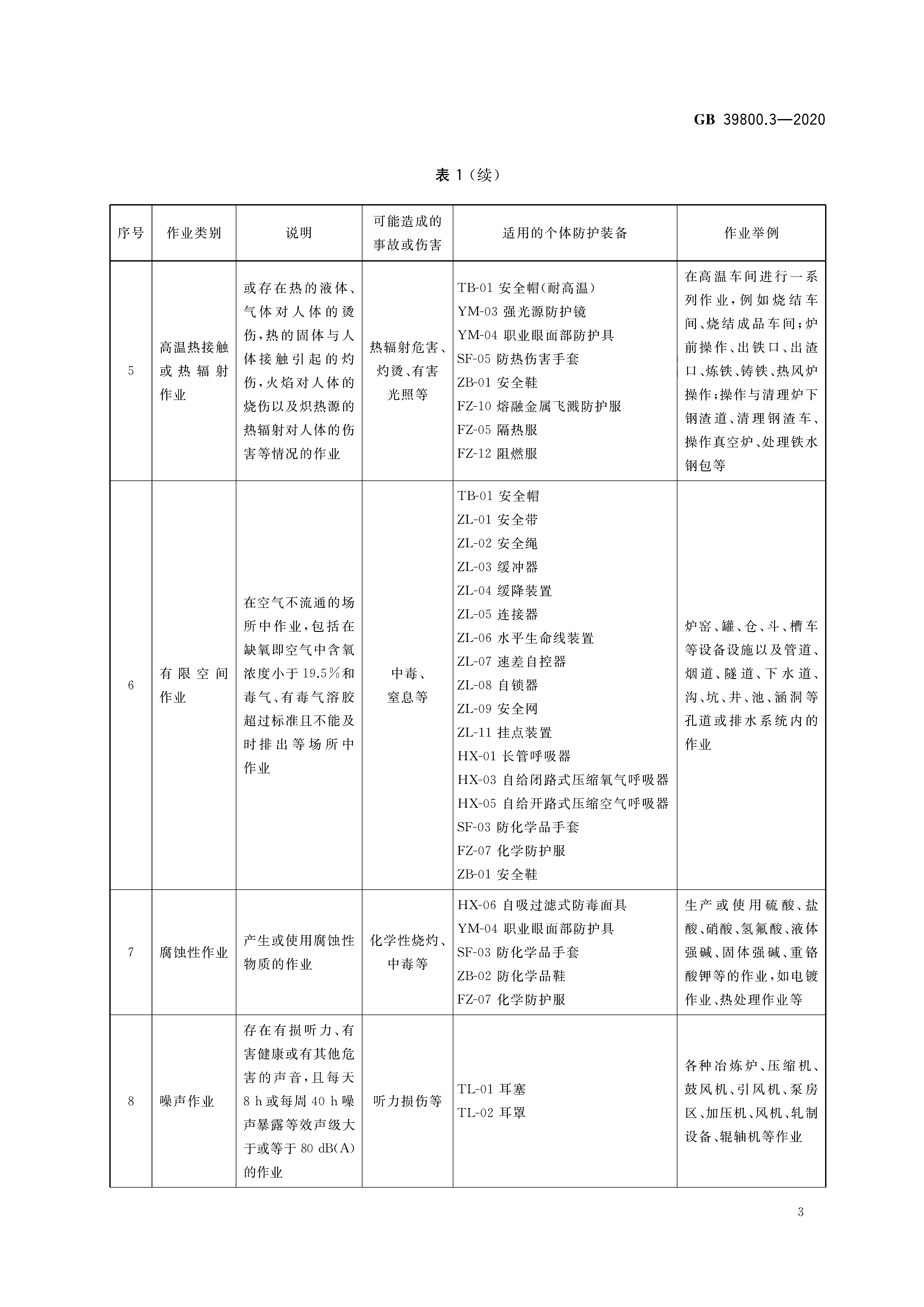 GB 39800.3-2020 個體(tǐ)防護裝備配備規範 第3部分(fēn):冶金、有色