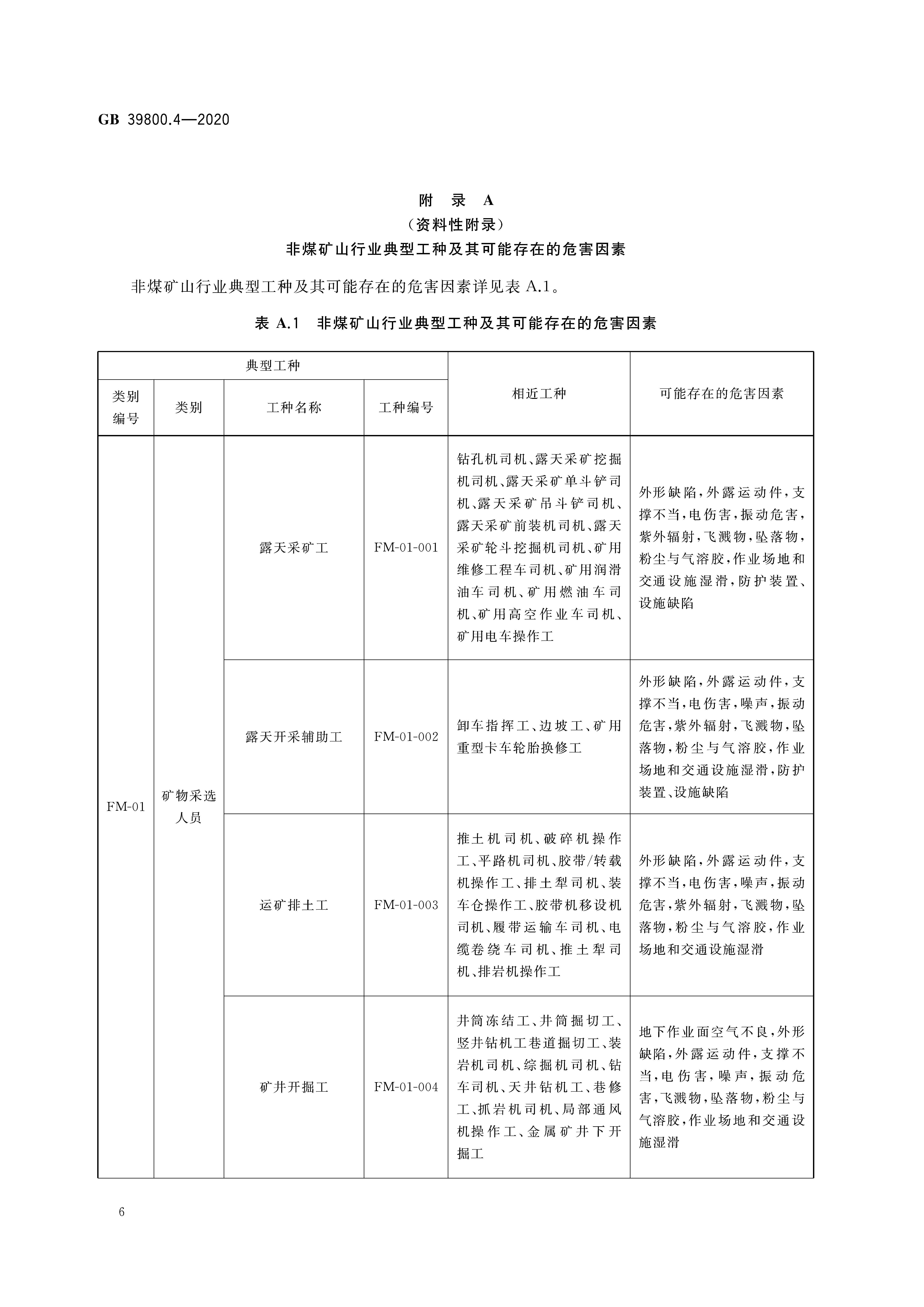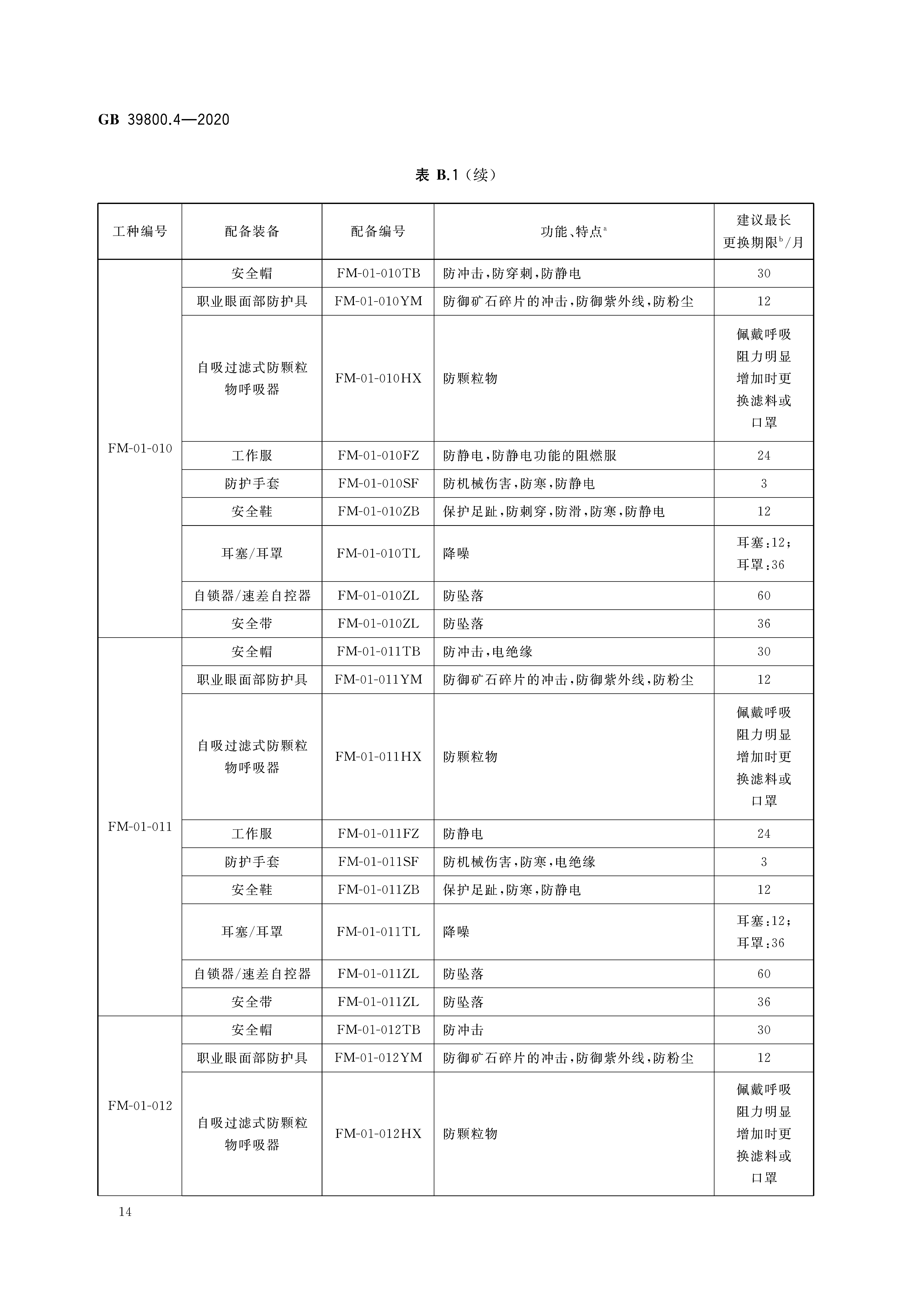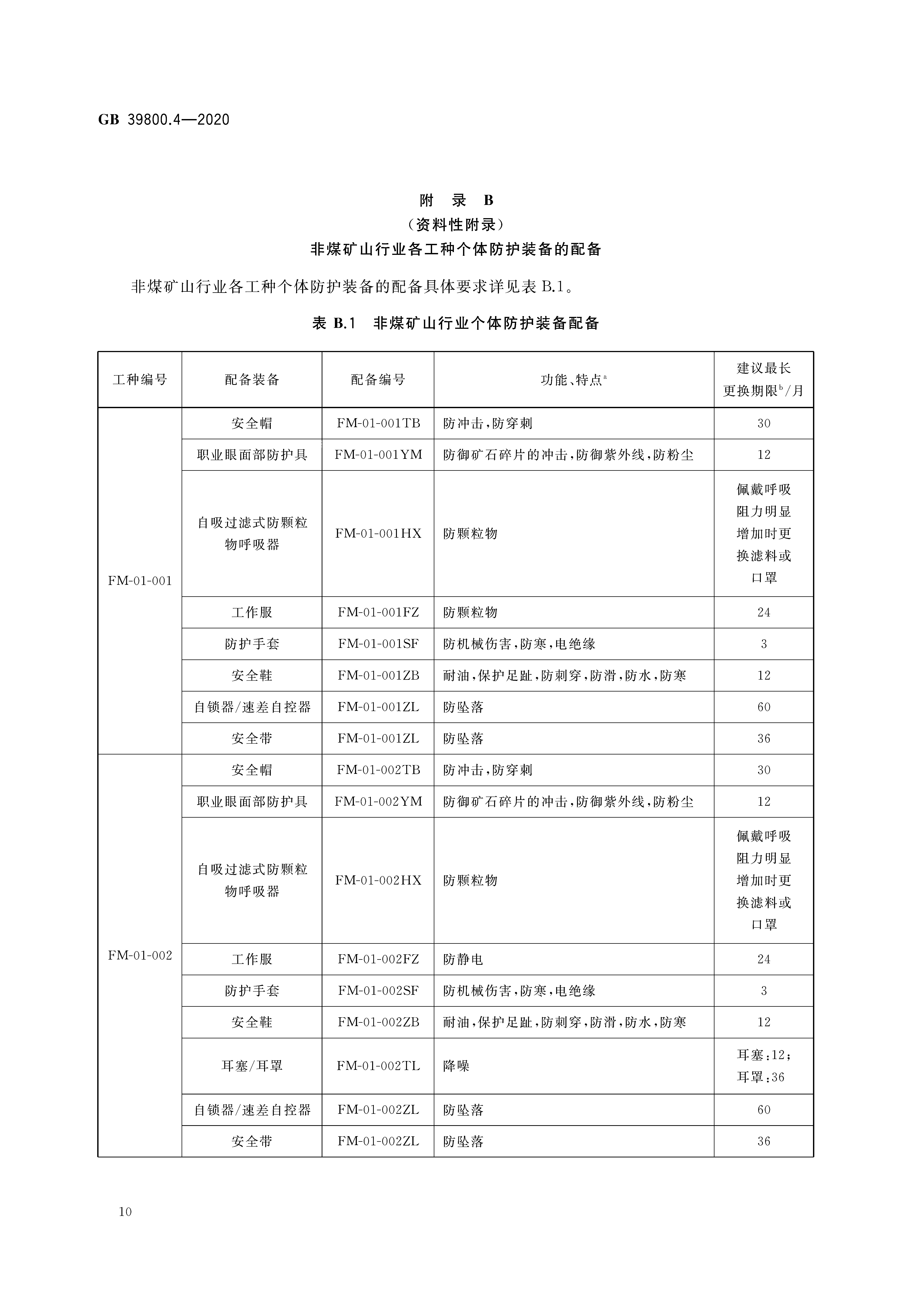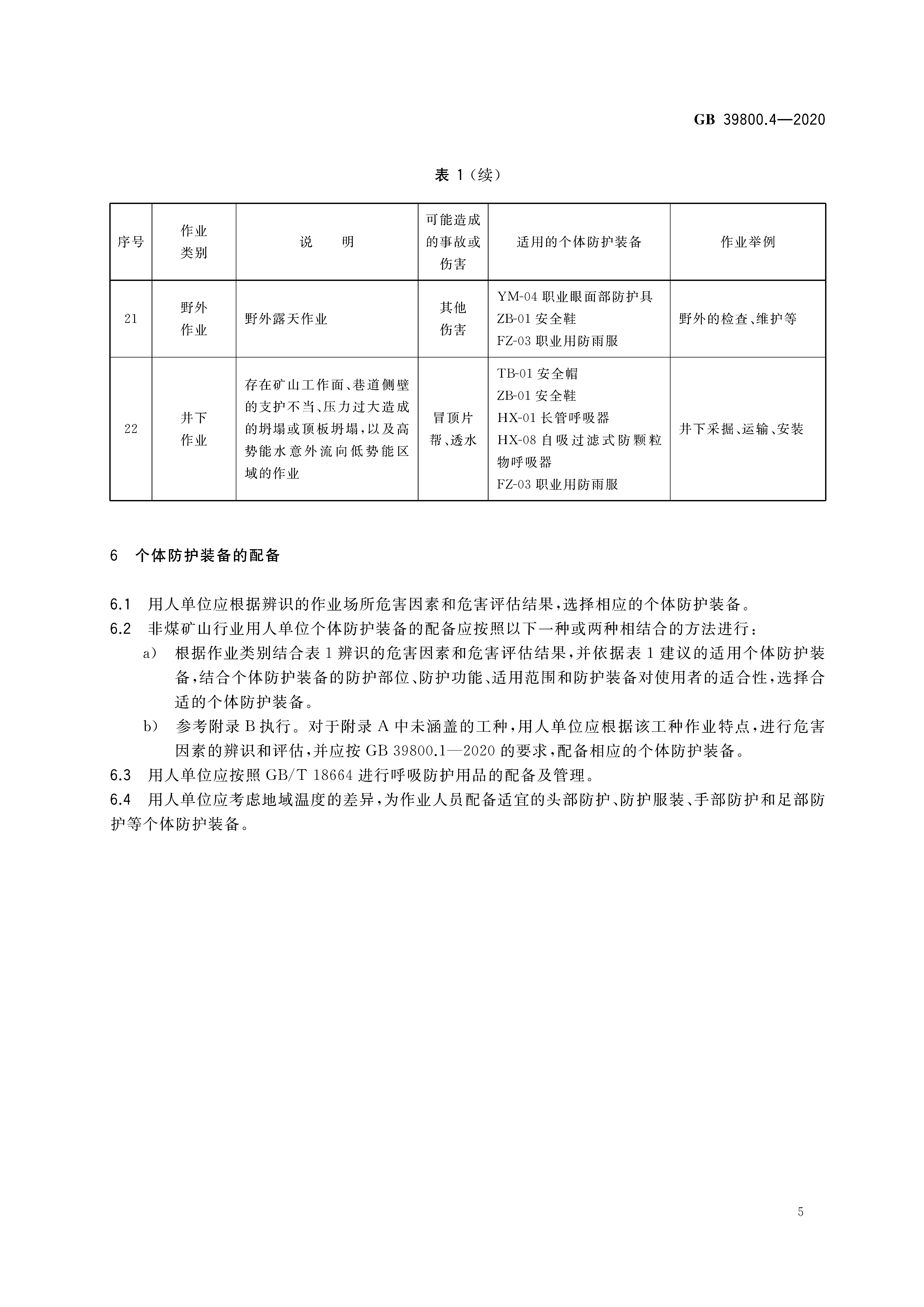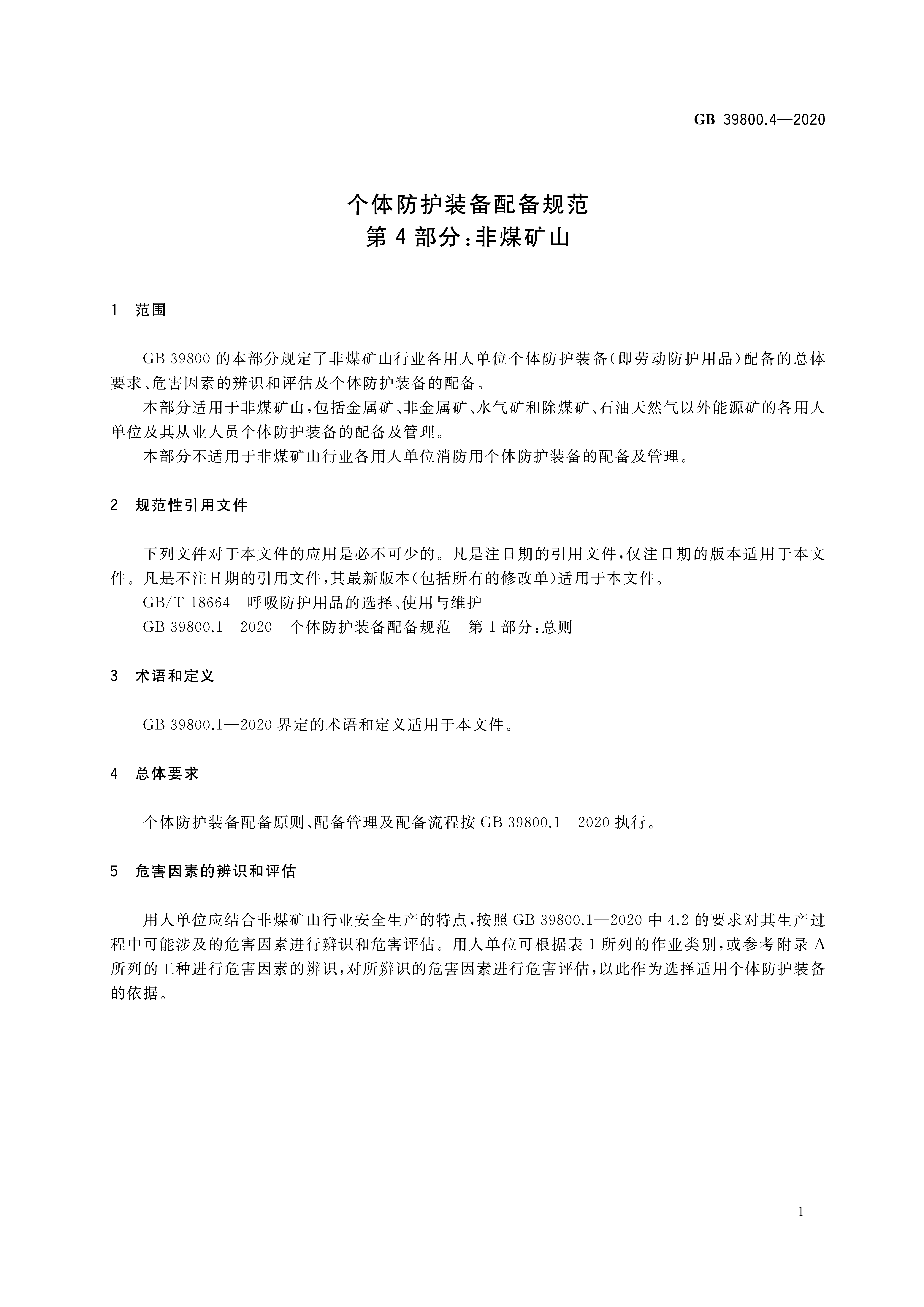 GB 39800.4-2020 個體(tǐ)防護裝備配備規範 第4部分(fēn):非煤礦山(shān)