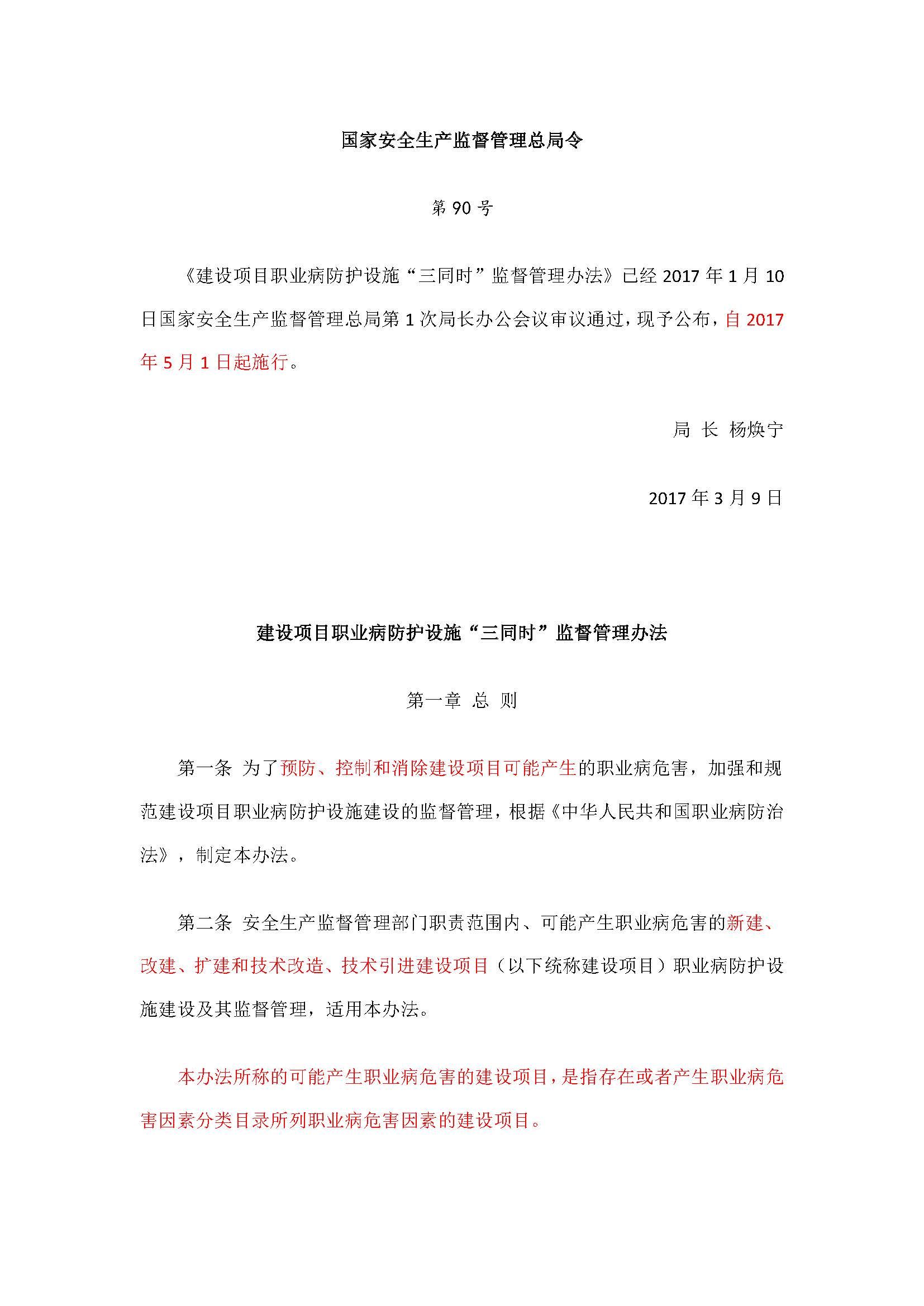《建設項目職業病防護設施“三同時”監督管理(lǐ)辦法》(安監總局90号令)