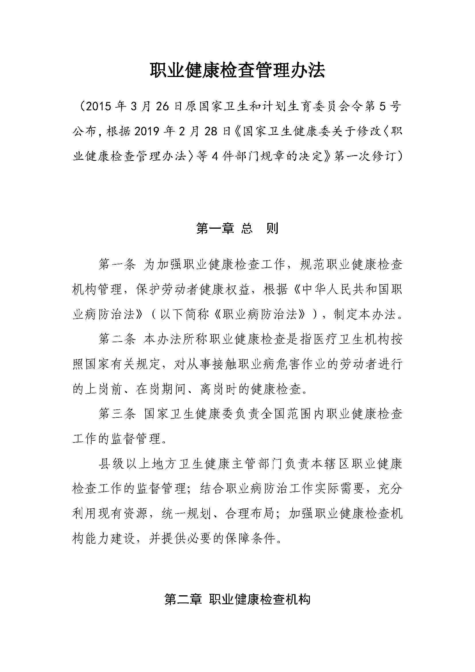 《職業健康檢查管理(lǐ)辦法》(衛健委令第2号)