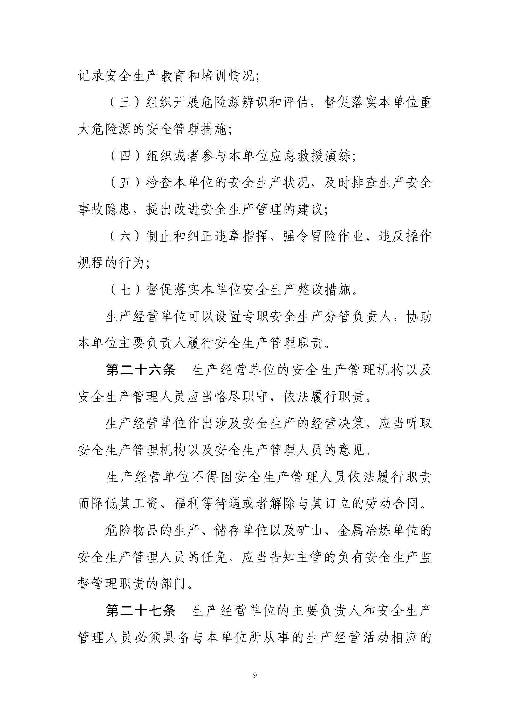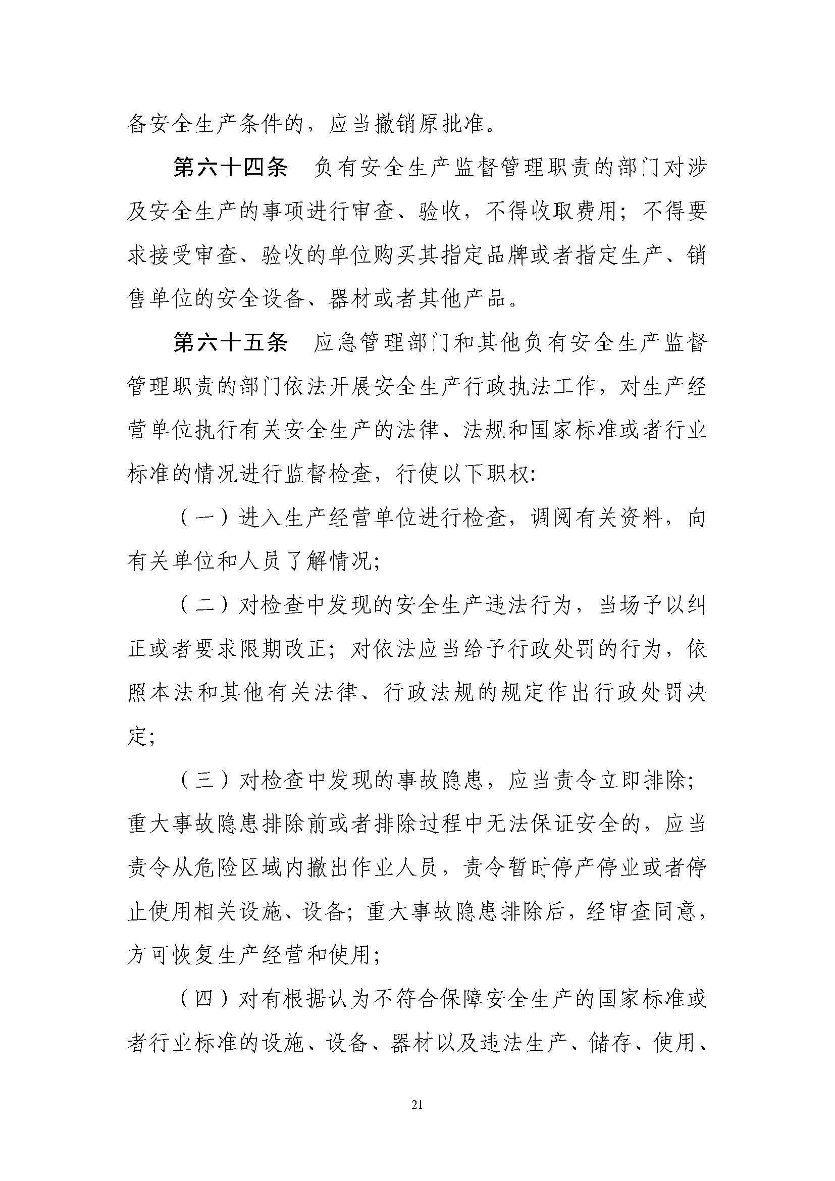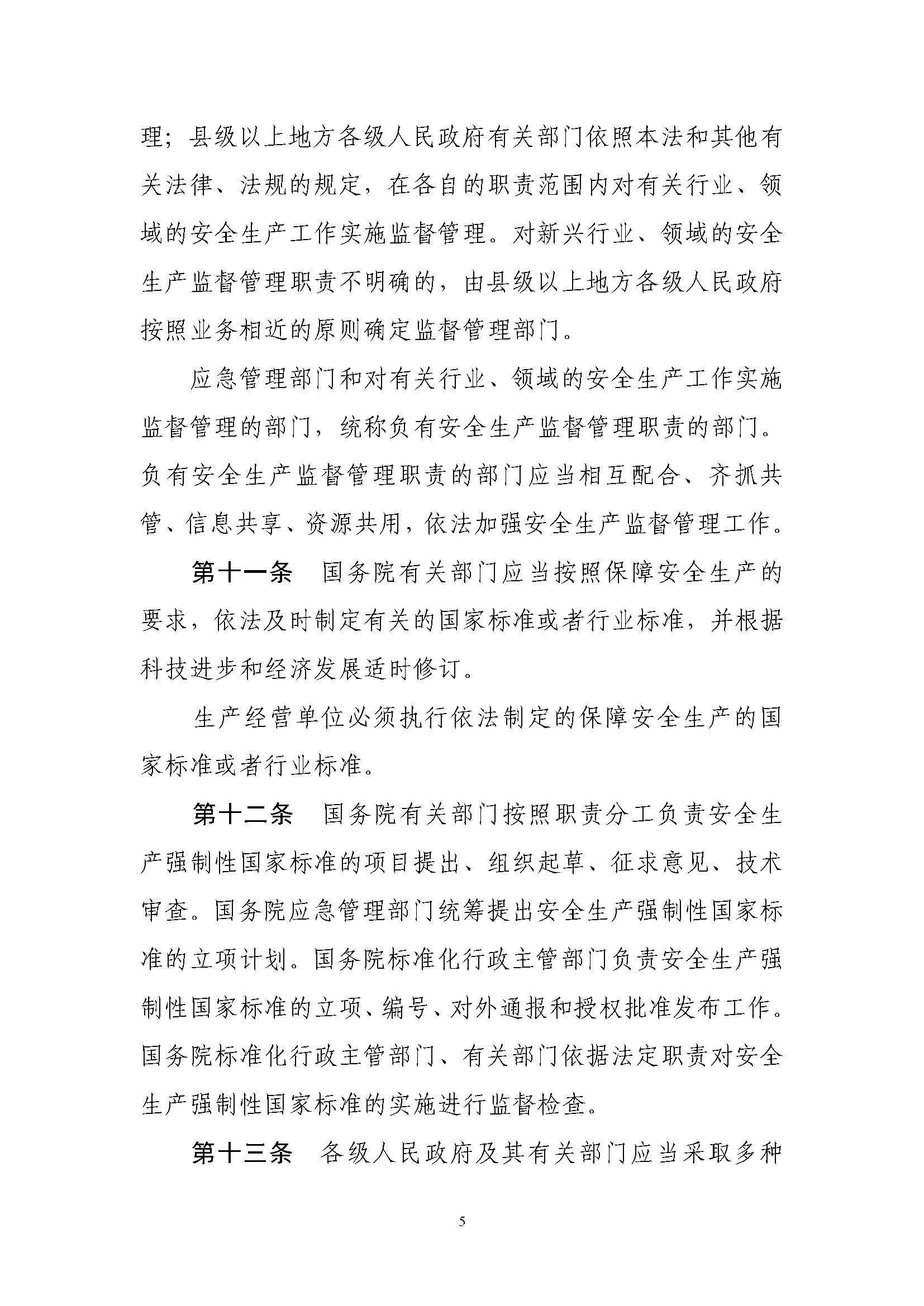 《中華人(rén)民(mín)共和國(guó)安全生(shēng)産法》(主席令〔2021〕第88号)