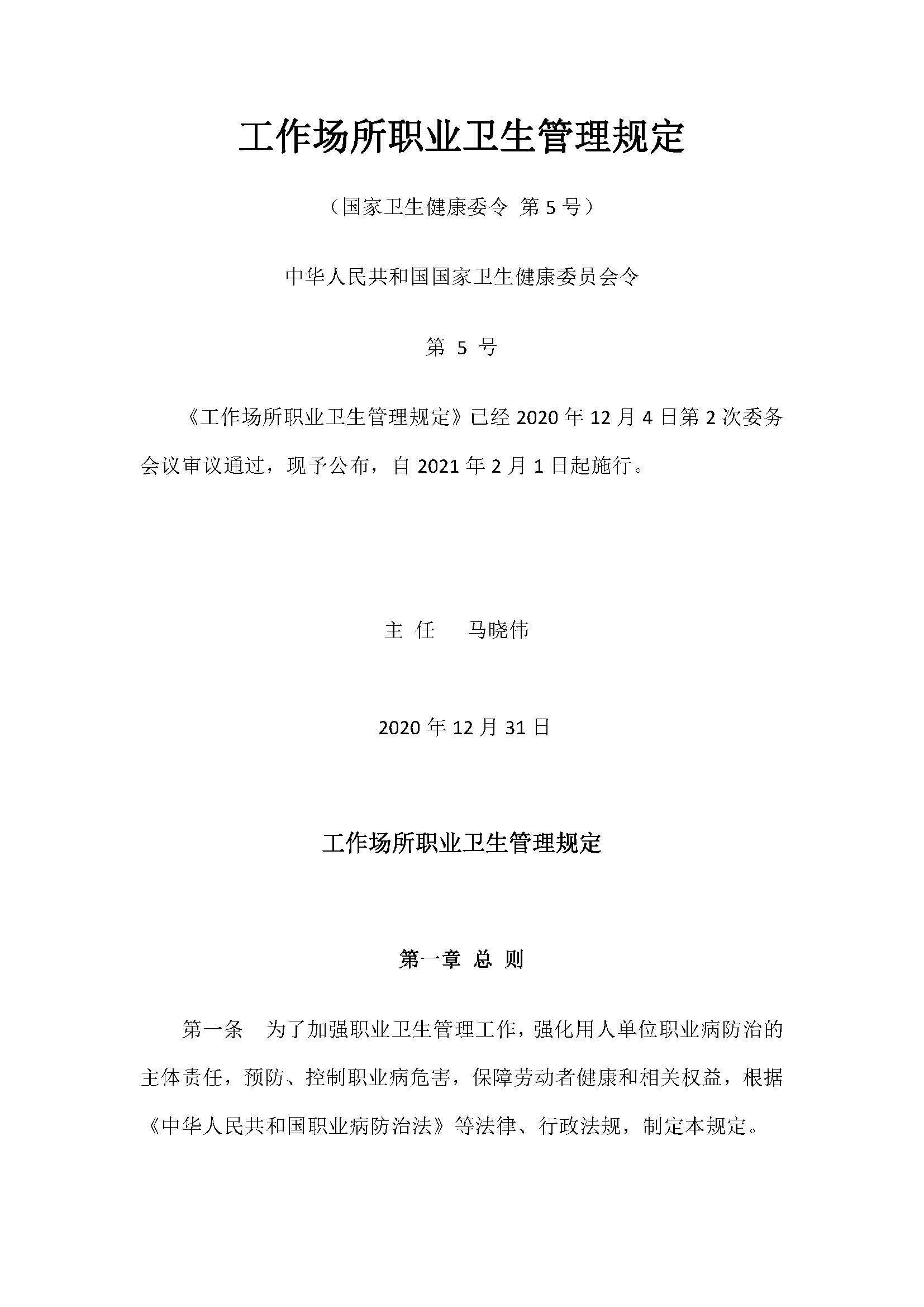 《工(gōng)作(zuò)場所職業衛生(shēng)管理(lǐ)規定》(國(guó)家衛生(shēng)健康委令 第5号)