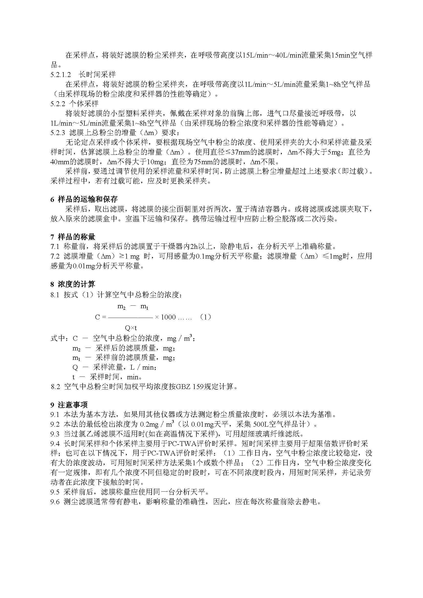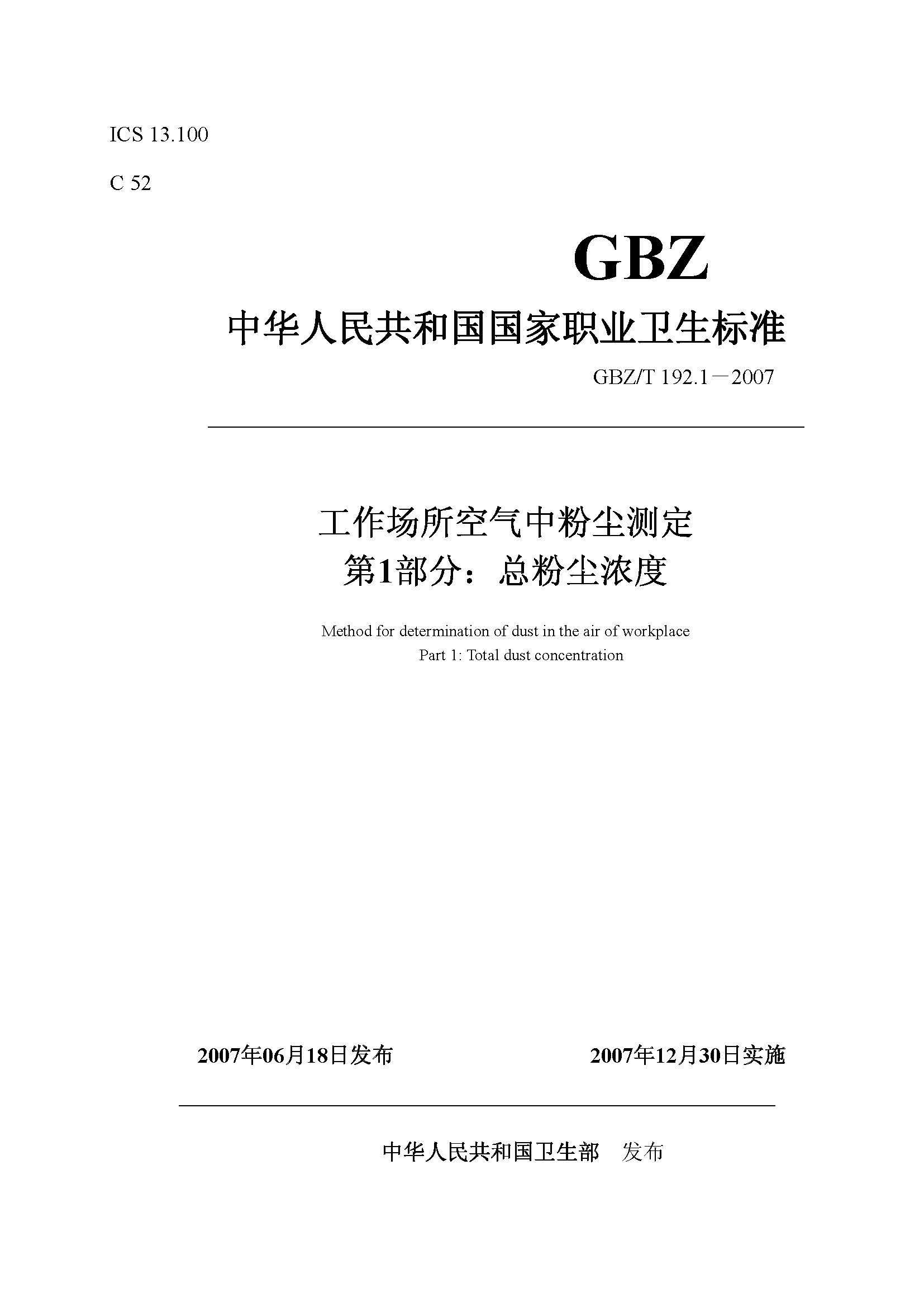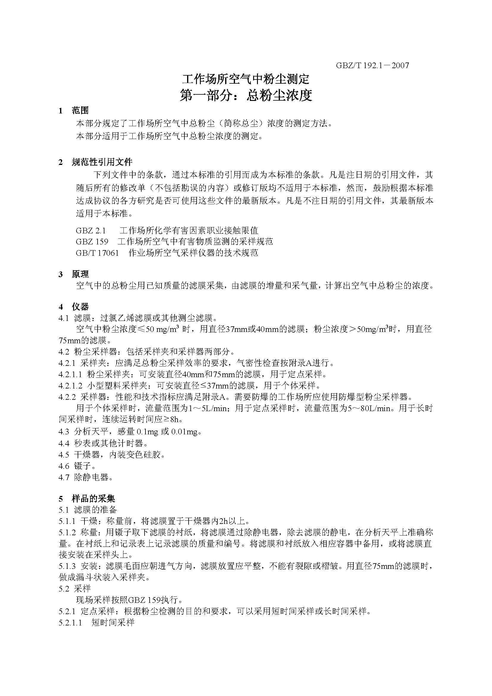 GBZT 192.1-2007 工(gōng)作(zuò)場所空氣中粉塵測定 第1部分(fēn)總粉塵濃度