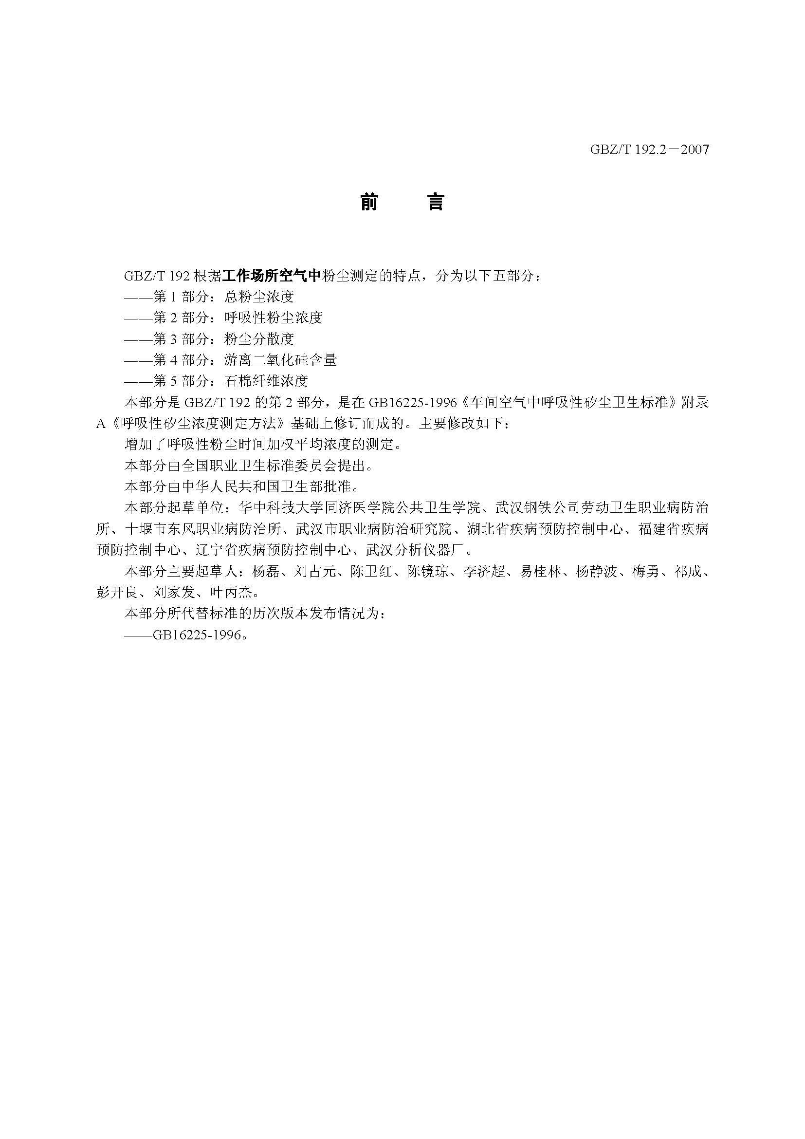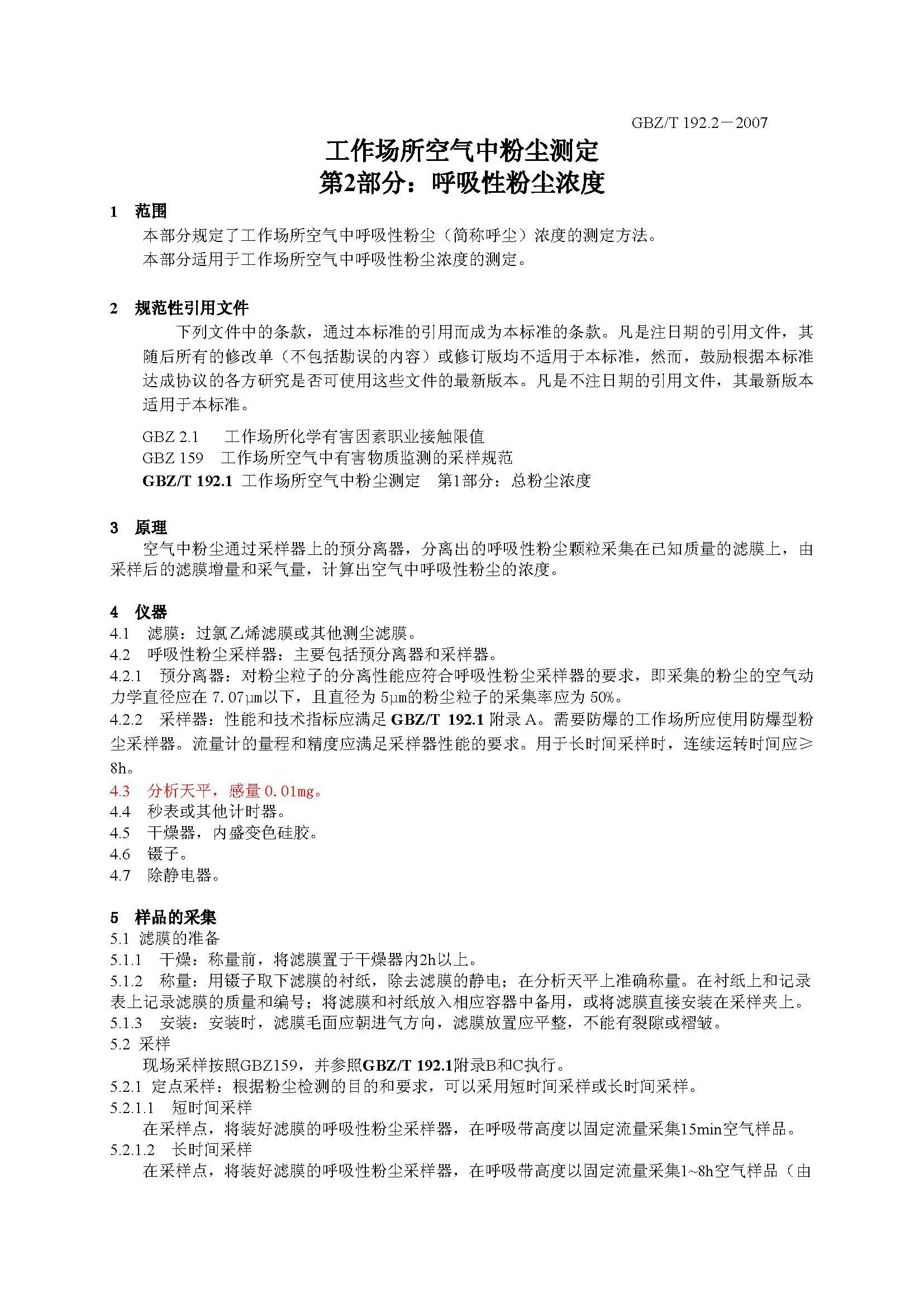 GBZT 192.2-2007 工(gōng)作(zuò)場所空氣中粉塵測定 第2部分(fēn):呼吸性粉塵濃度