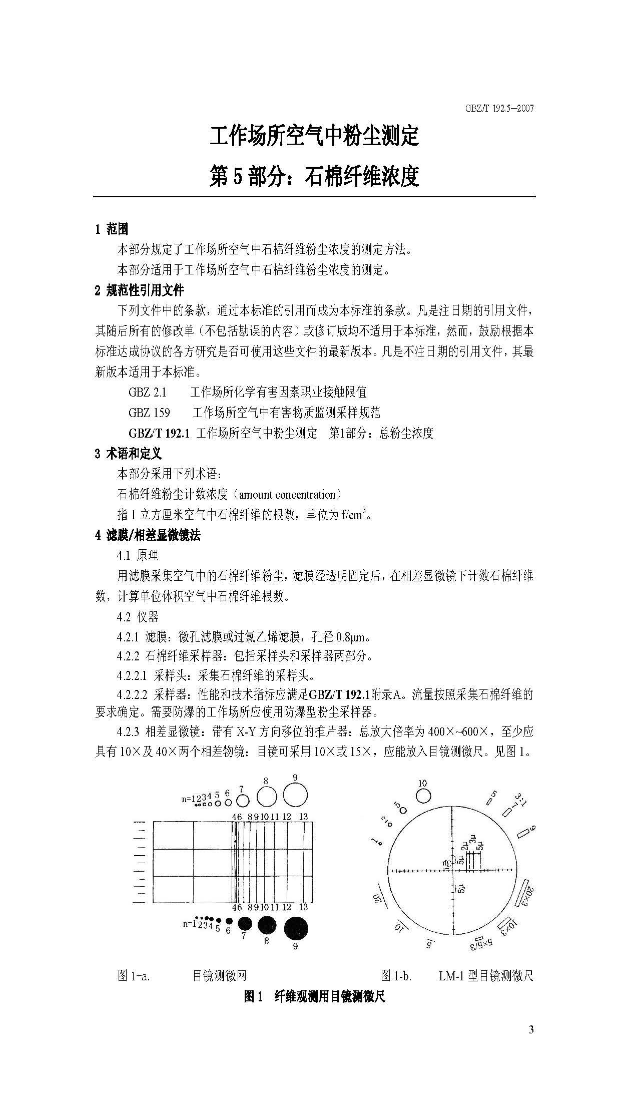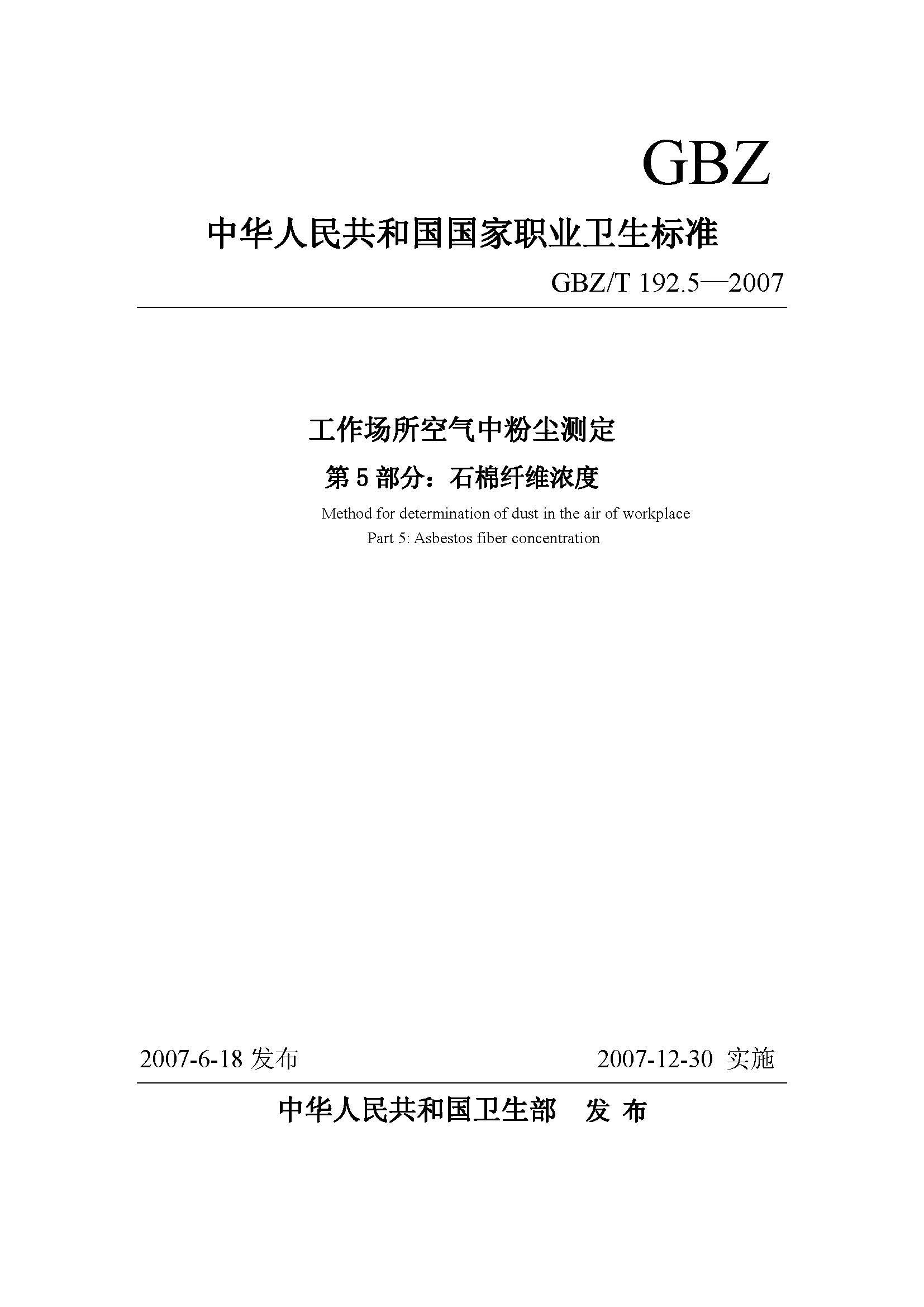 GBZT 192.5-2007 工(gōng)作(zuò)場所空氣中粉塵測定 第5部分(fēn):石棉纖維濃度